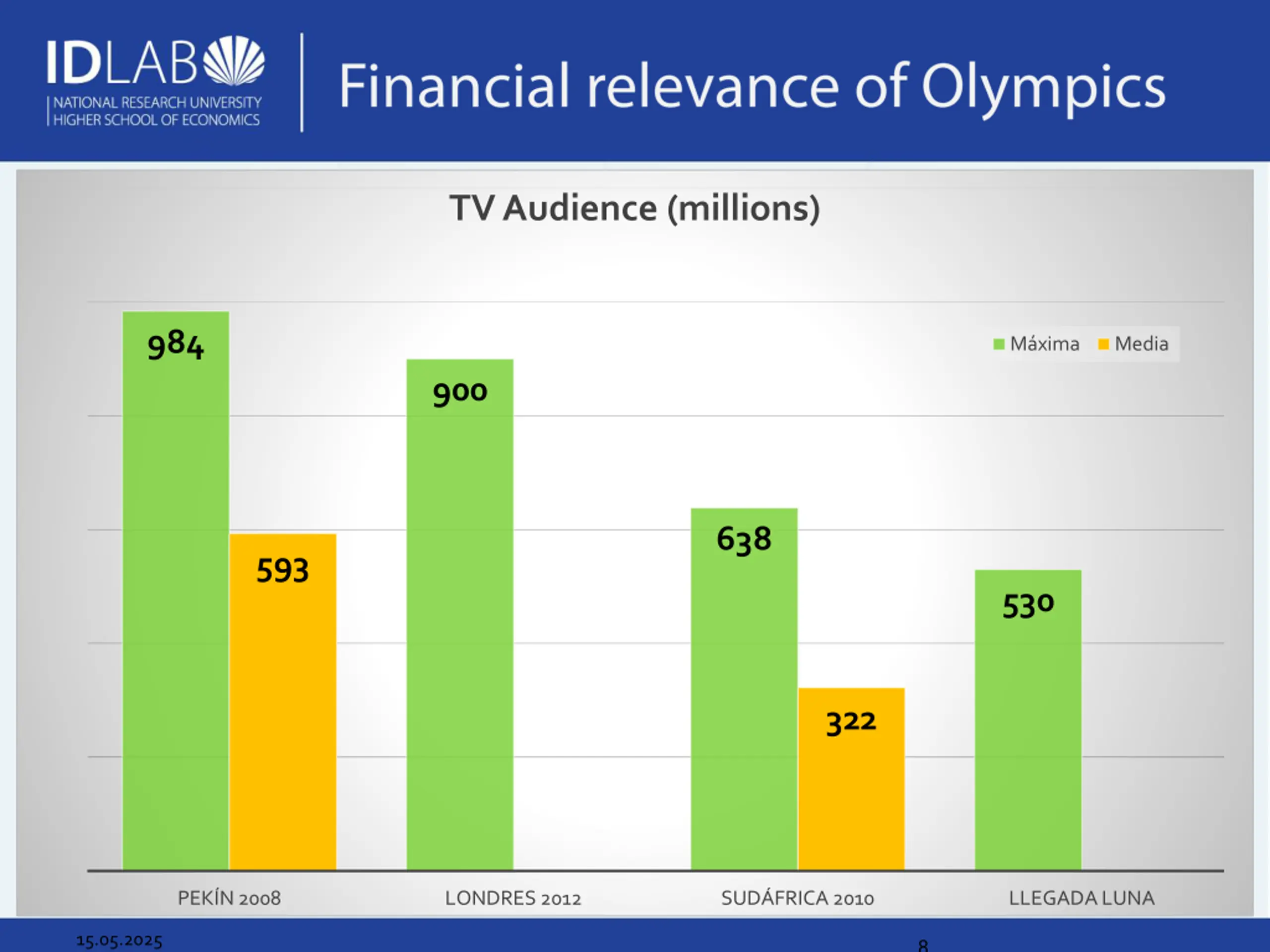 TV Audience (millions) 984 M xima Media 900 638 593 530 322 PEK N 2008 LONDRES 2012 SUD FRICA 2010 LLEGADA LUNA 15.05.2025 8
