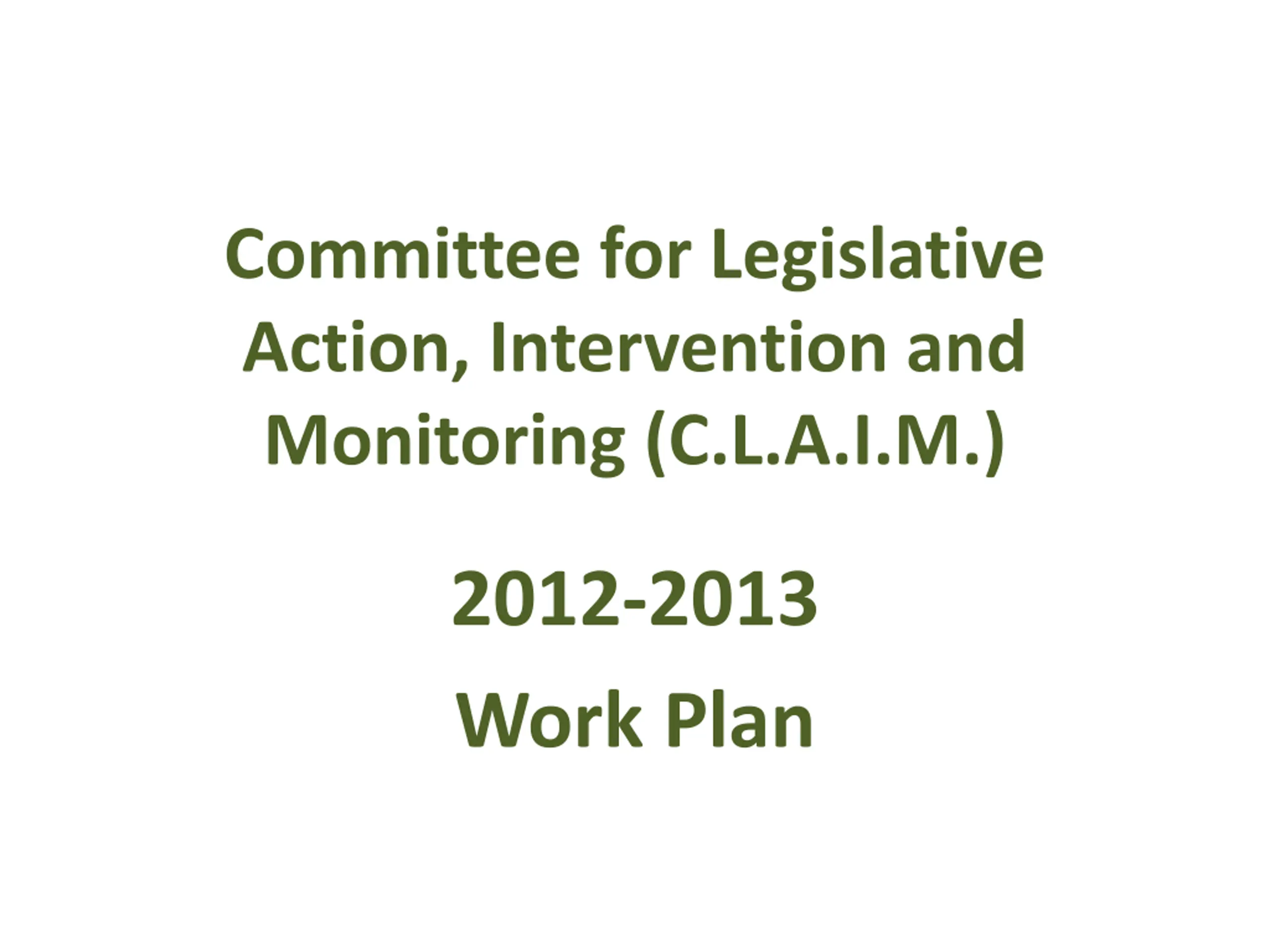 Committee for Legislative Action, Intervention and Monitoring (C.L.A.I.M.) 2012-2013 Work Plan