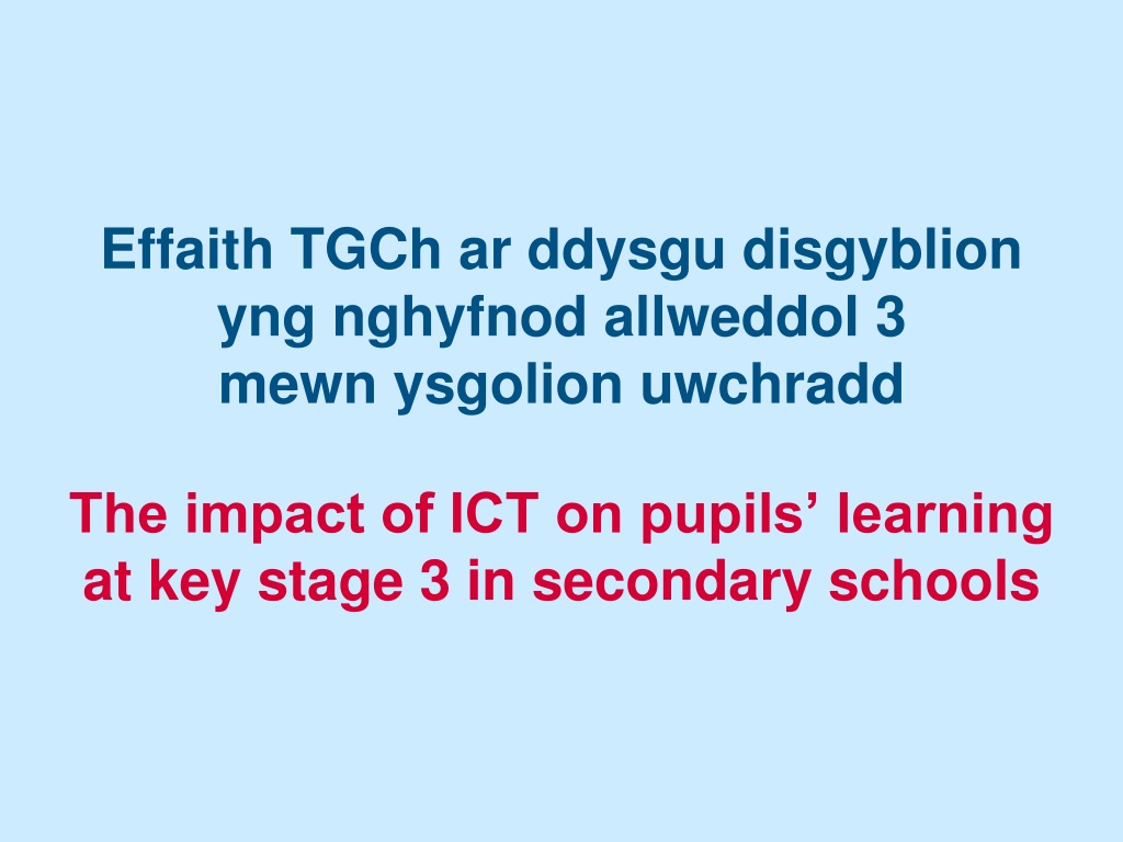 Effaith TGCh ar ddysgu disgyblion yng nghyfnod allweddol 3 mewn ysgolion uwchradd The impact of ICT on pupils learning at key stage 3 in secondary schools