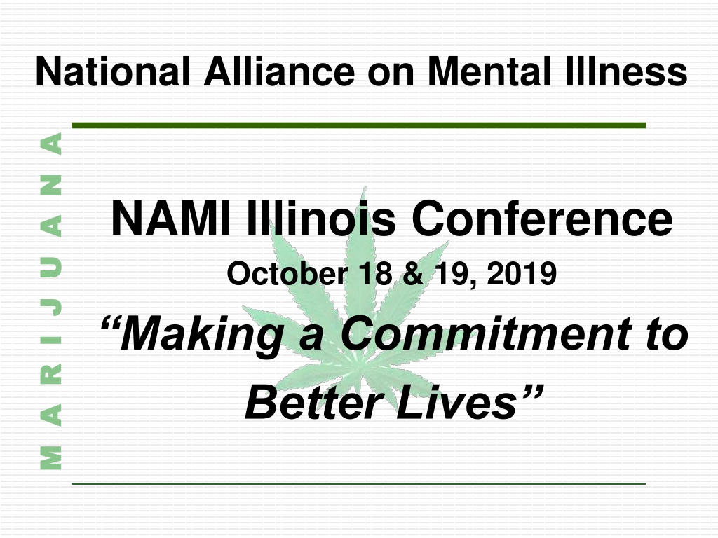 National Alliance on Mental Illness M A R I J U A N A M A R I J U A N A NAMI Illinois Conference October 18 & 19, 2019 Making a Commitment to Better Lives