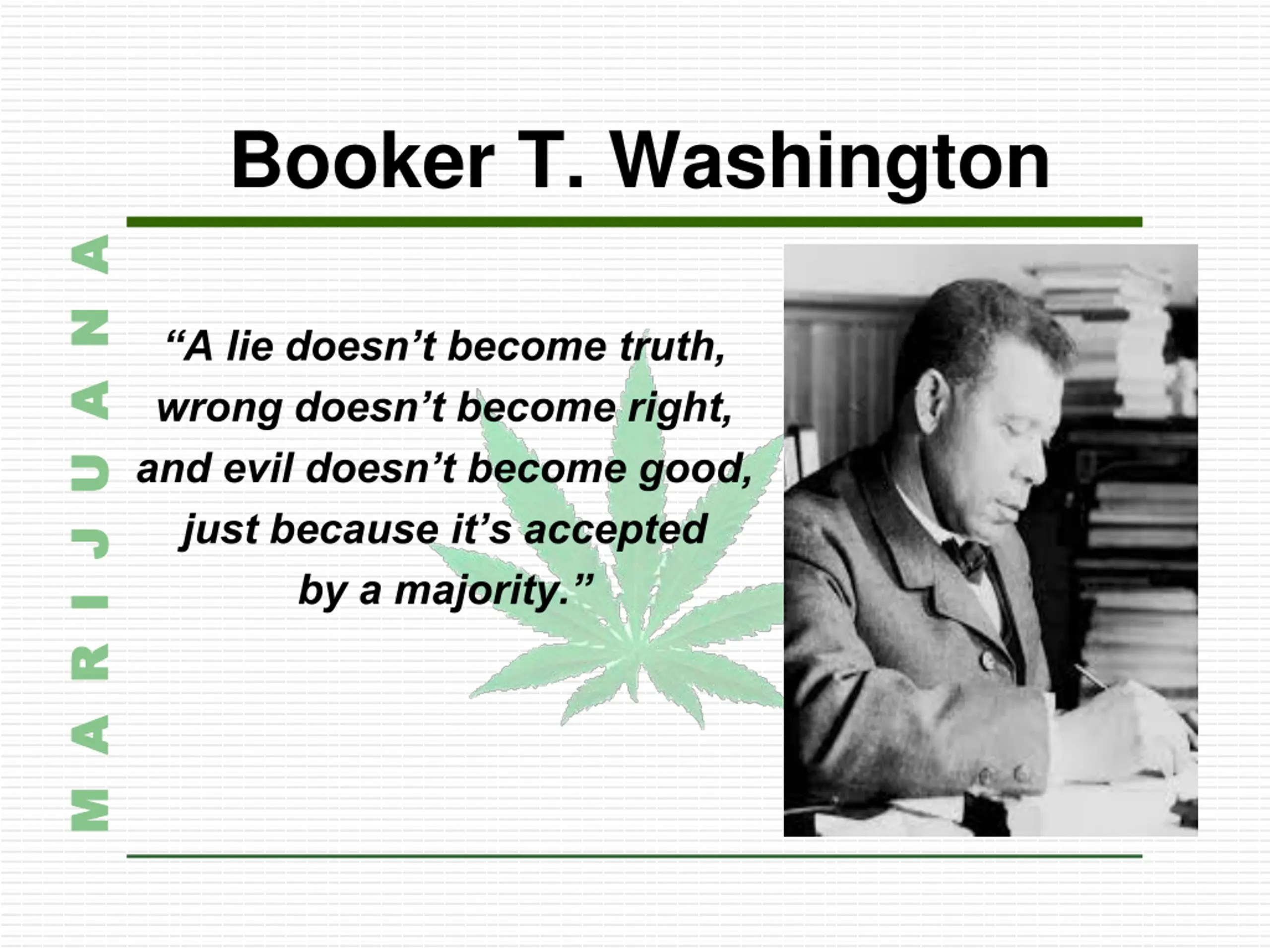 Booker T. Washington M A R I J U A N A M A R I J U A N A A lie doesn t become truth, wrong doesn t become right, and evil doesn t become good, just because it s accepted by a majority.