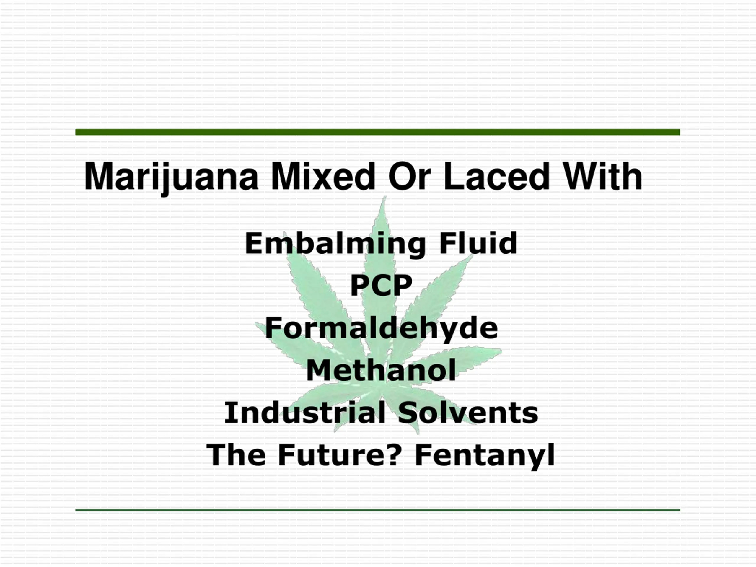 Marijuana Mixed Or Laced With Embalming Fluid PCP Formaldehyde Methanol Industrial Solvents The Future? Fentanyl