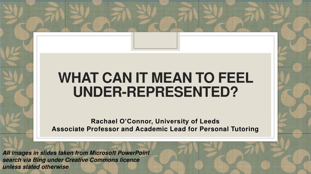 WHAT CAN IT MEAN TO FEEL UNDER-REPRESENTED? Rachael O Connor, University of Leeds Associate Professor and Academic Lead for Personal Tutoring All images in slides taken from Microsoft PowerPoint search via Bing under Creative Commons licence unless stated otherwise