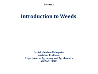 Lecture 2 Harmful and Beneficial Effects of Weeds on Ecosystem Dr. Ashirbachan Mahapatra Assistant Professor Department of Agronomy and Agroforestry MSSSoA, CUTM