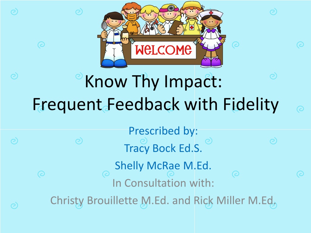 Know Thy Impact: Frequent Feedback with Fidelity Prescribed by: Tracy Bock Ed.S. Shelly McRae M.Ed. In Consultation with: Christy Brouillette M.Ed. and Rick Miller M.Ed.
