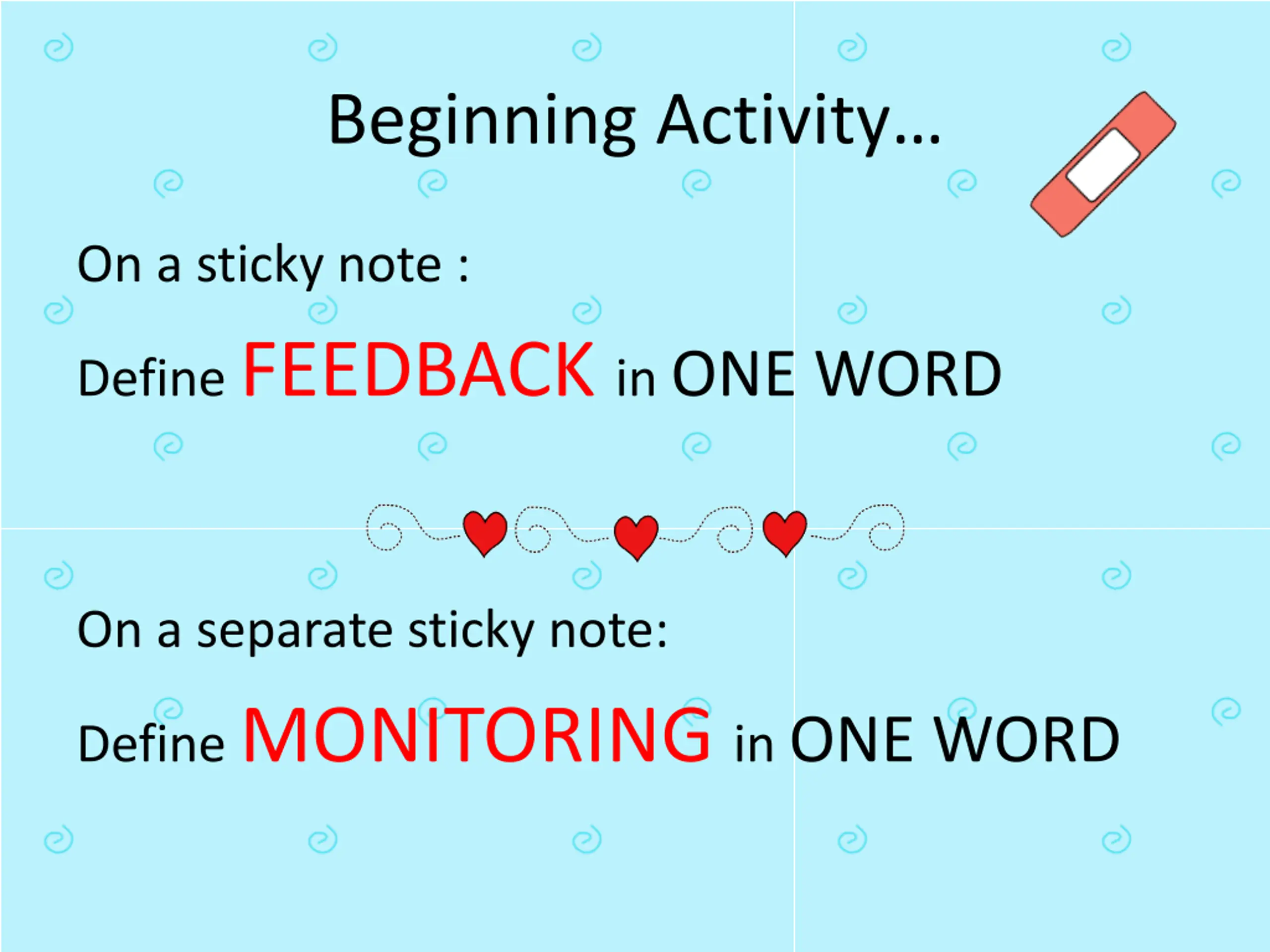 Beginning Activity On a sticky note : Define FEEDBACK in ONE WORD On a separate sticky note: Define MONITORING in ONE WORD