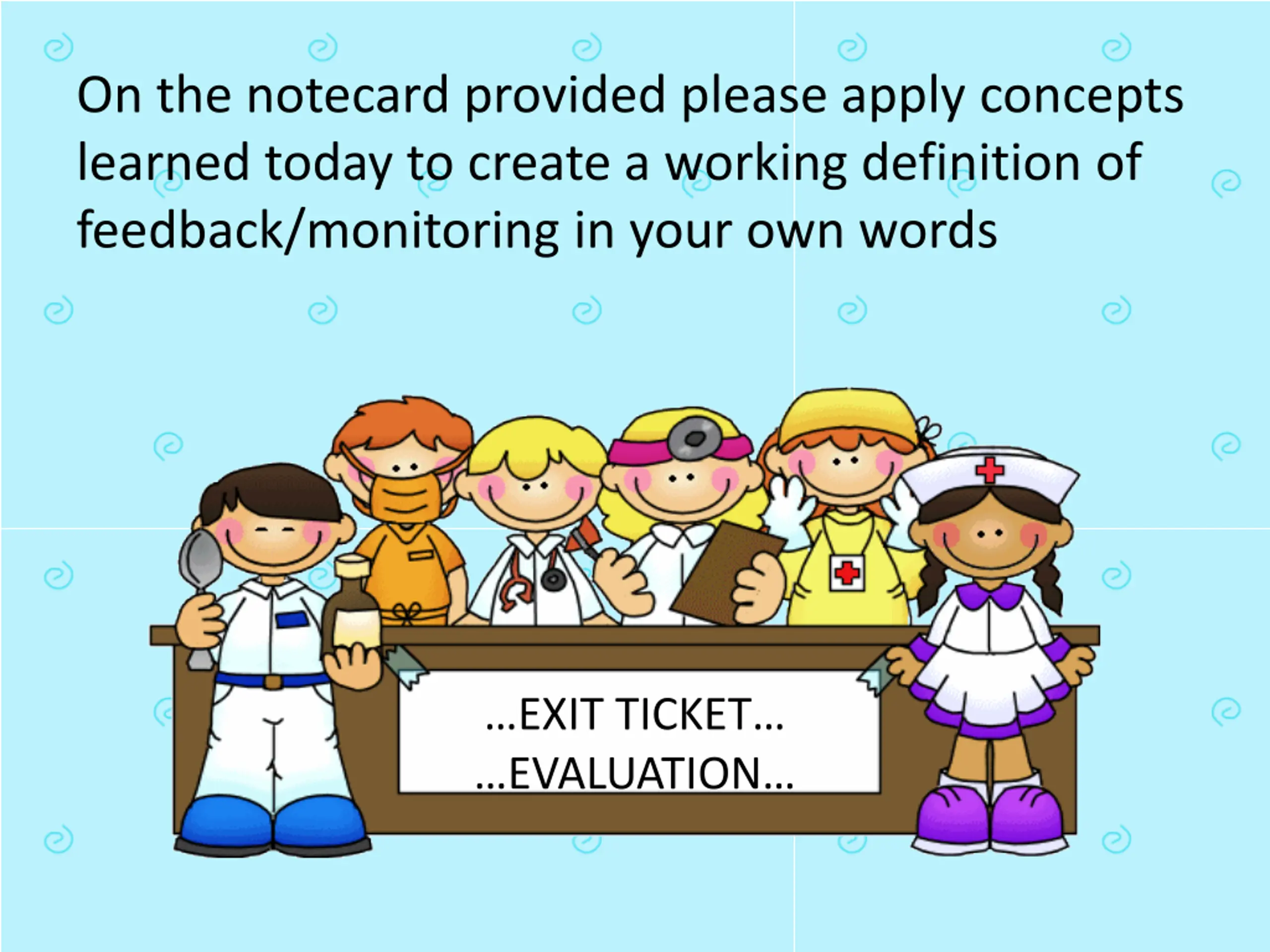 On the notecard provided please apply concepts learned today to create a working definition of feedback/monitoring in your own words EXIT TICKET EVALUATION
