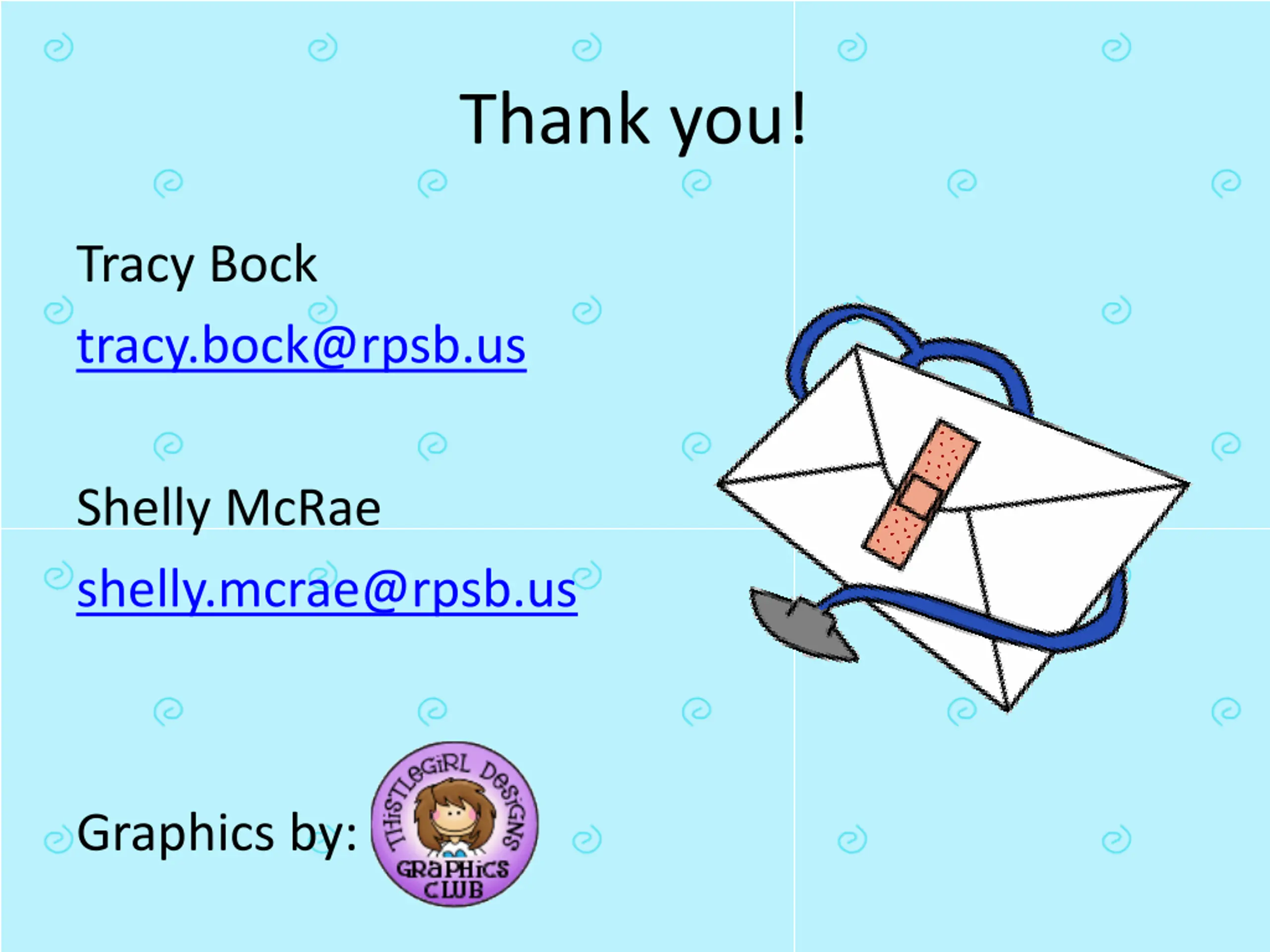 Thank you! Tracy Bock tracy.bock@rpsb.us Shelly McRae shelly.mcrae@rpsb.us Graphics by: