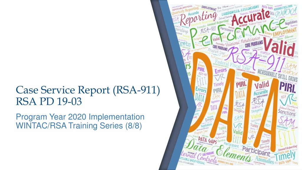 Explore the detailed training series on implementing the Case Service Report (RSA-911) for State Vocational Rehabilitation agencies, covering reporting requirements, tools/resources, and WIOA Annual Report insights. Get valuable guidance from expert presenters and stay informed on essential VR program updates.