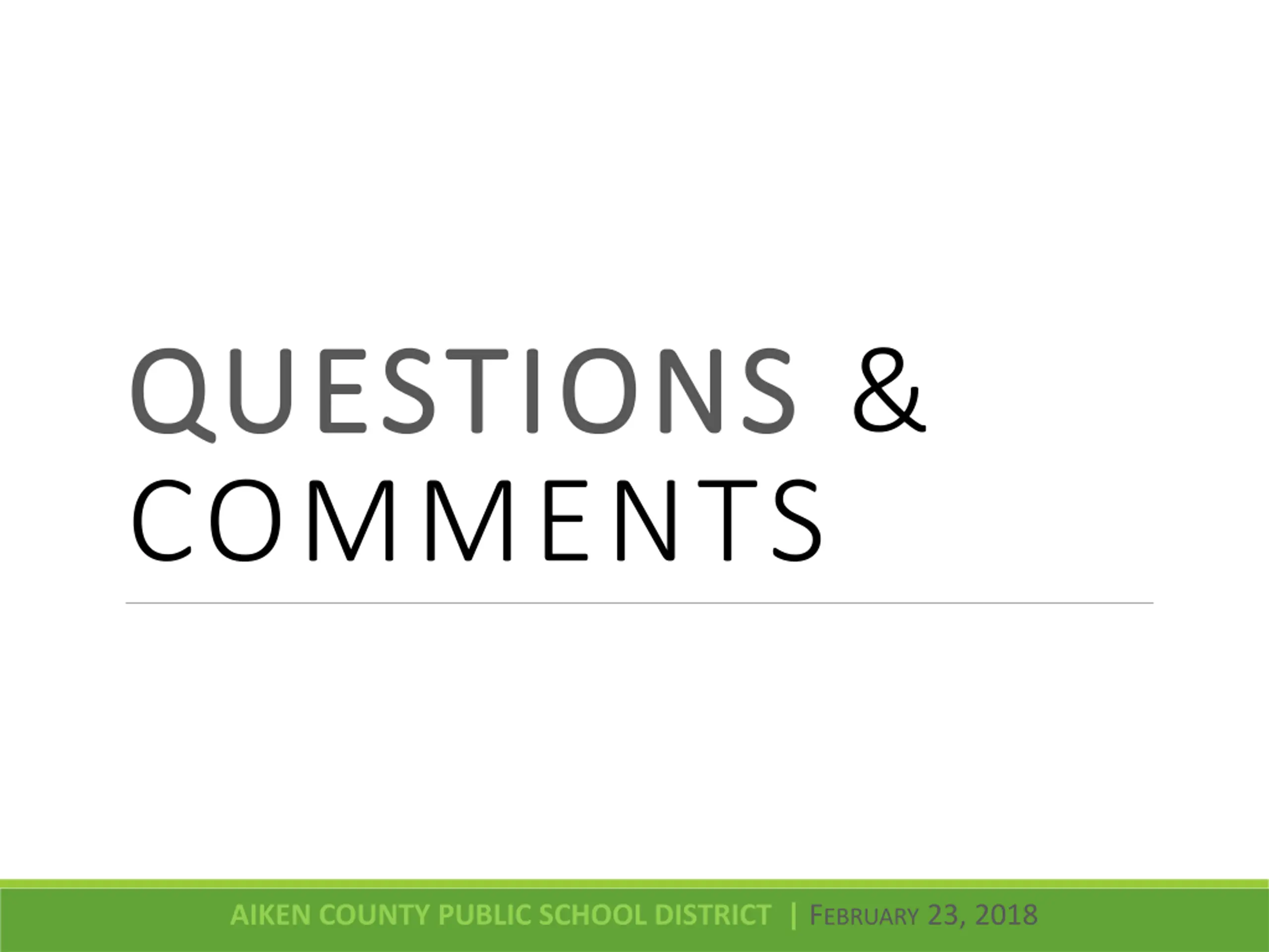 QUESTIONS QUESTIONS & COMMENTS AIKEN COUNTY PUBLIC SCHOOL DISTRICT | FEBRUARY 23, 2018