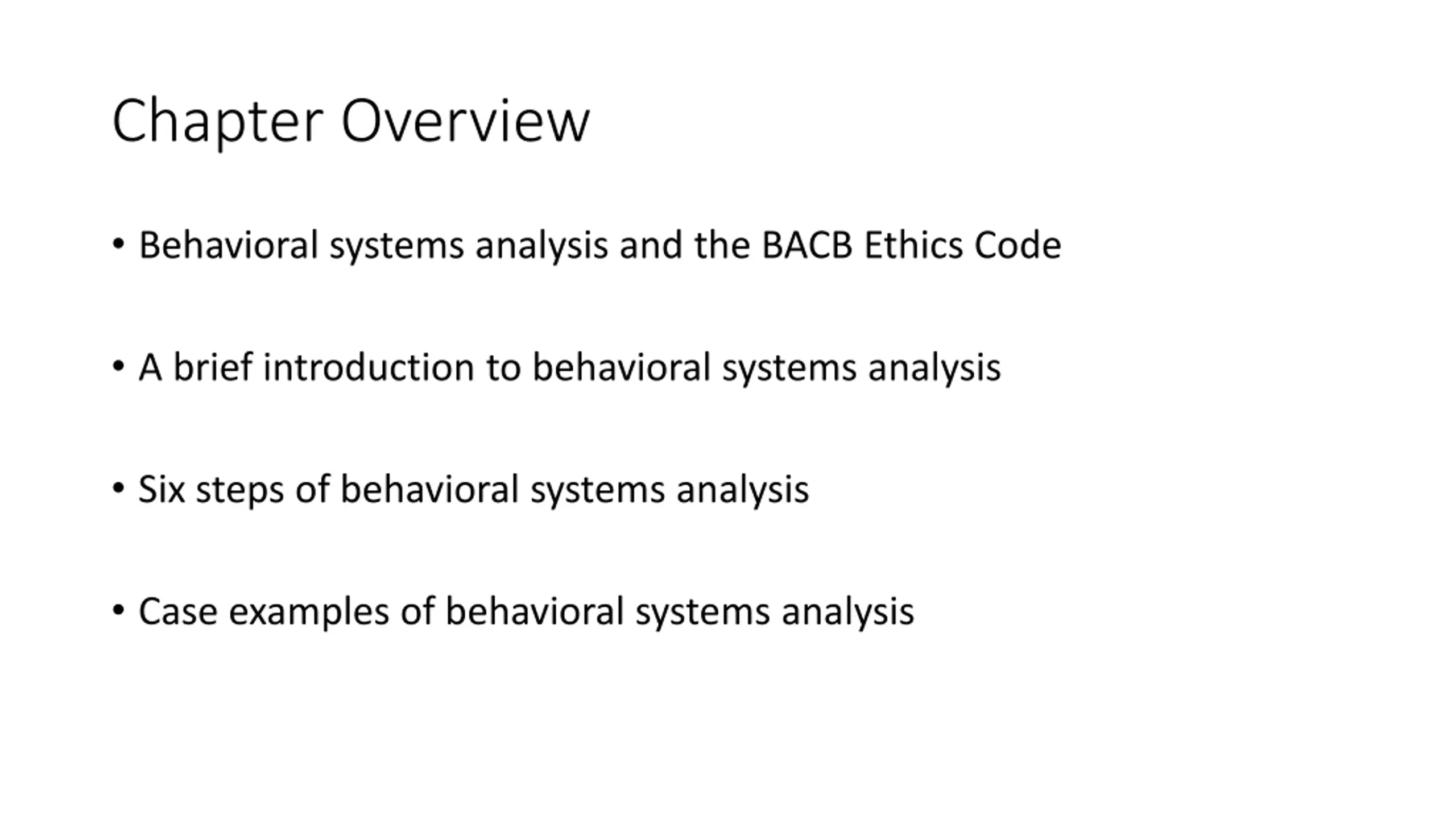 Chapter Overview Behavioral systems analysis and the BACB Ethics Code A brief introduction to behavioral systems analysis Six steps of behavioral systems analysis Case examples of behavioral systems analysis