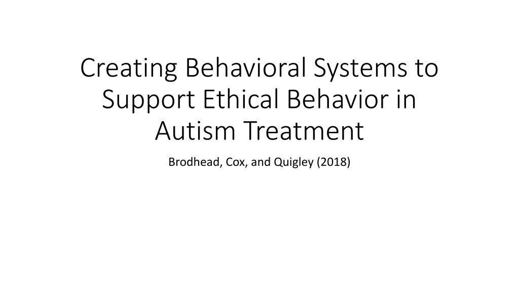 Creating Behavioral Systems to Support Ethical Behavior in Autism Treatment Brodhead, Cox, and Quigley (2018)
