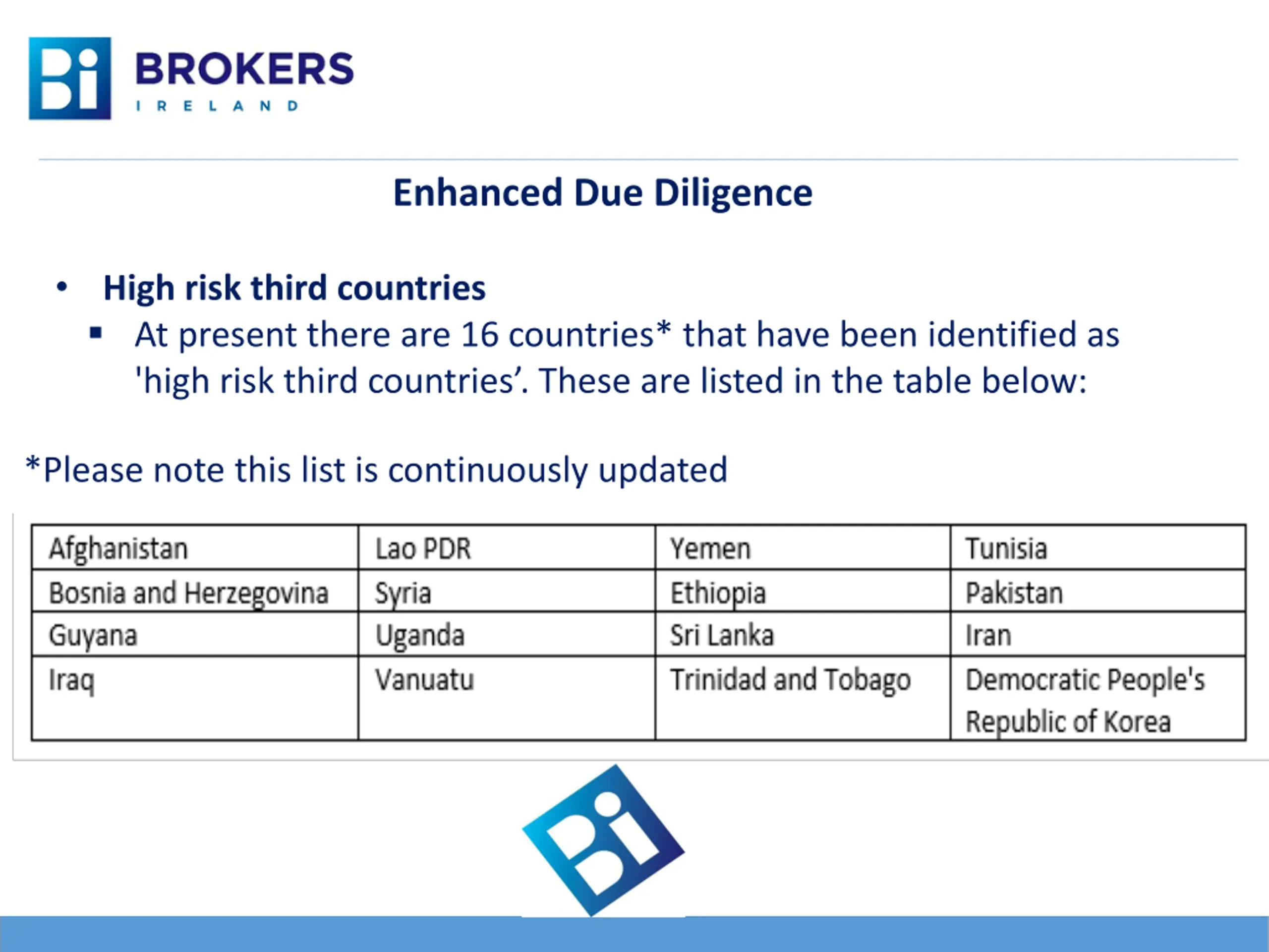 Enhanced Due Diligence High risk third countries At present there are 16 countries* that have been identified as 'high risk third countries . These are listed in the table below: *Please note this list is continuously updated