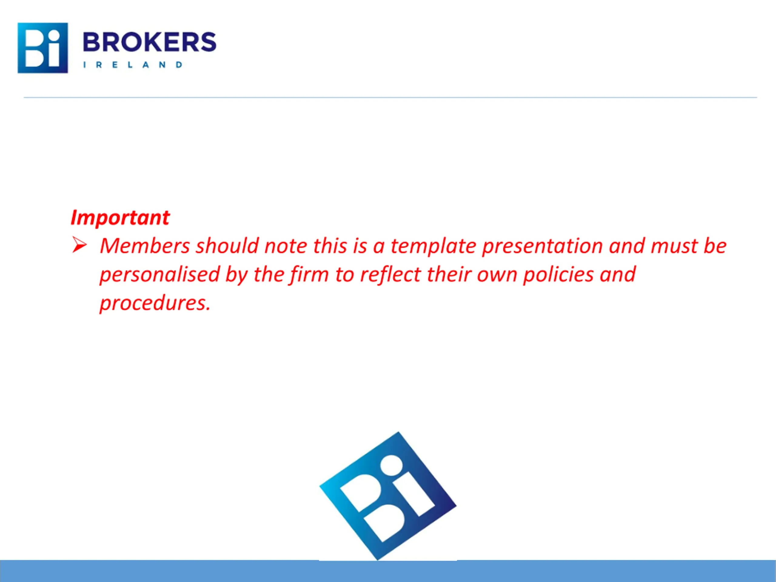 Important Members should note this is a template presentation and must be personalised by the firm to reflect their own policies and procedures.