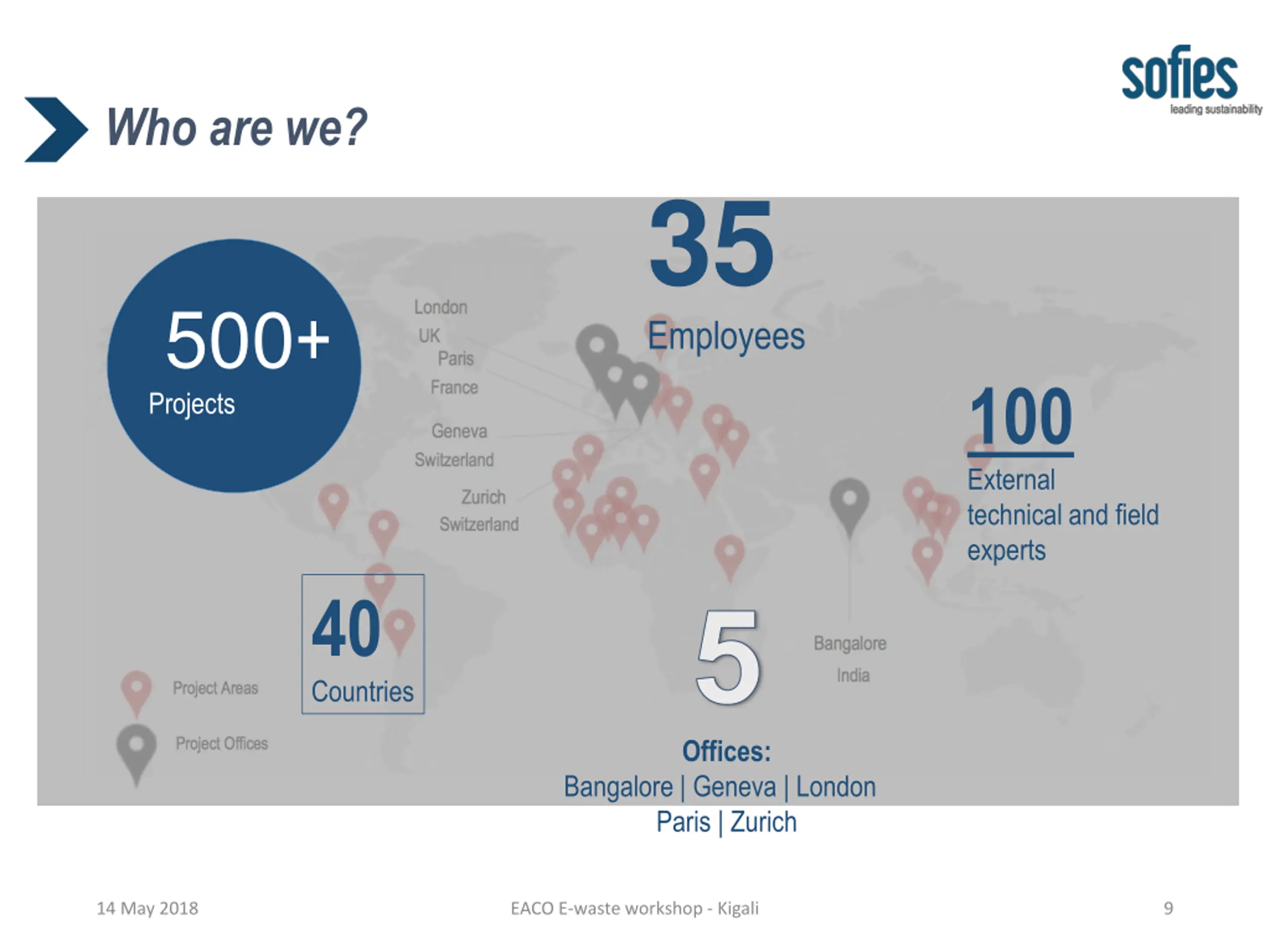 Who are we? 35 Employees 500+ Projects 100 External technical and field experts 5 Offices: 40 Countries Bangalore | Geneva | London Paris | Zurich 14 May 2018 EACO E-waste workshop - Kigali 9