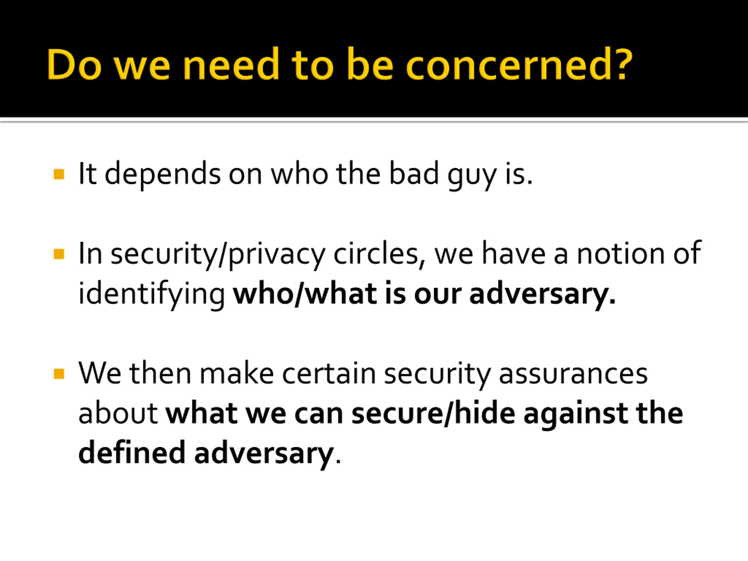 It depends on who the bad guy is. In security/privacy circles, we have a notion of identifying who/what is our adversary. We then make certain security assurances about what we can secure/hide against the defined adversary.