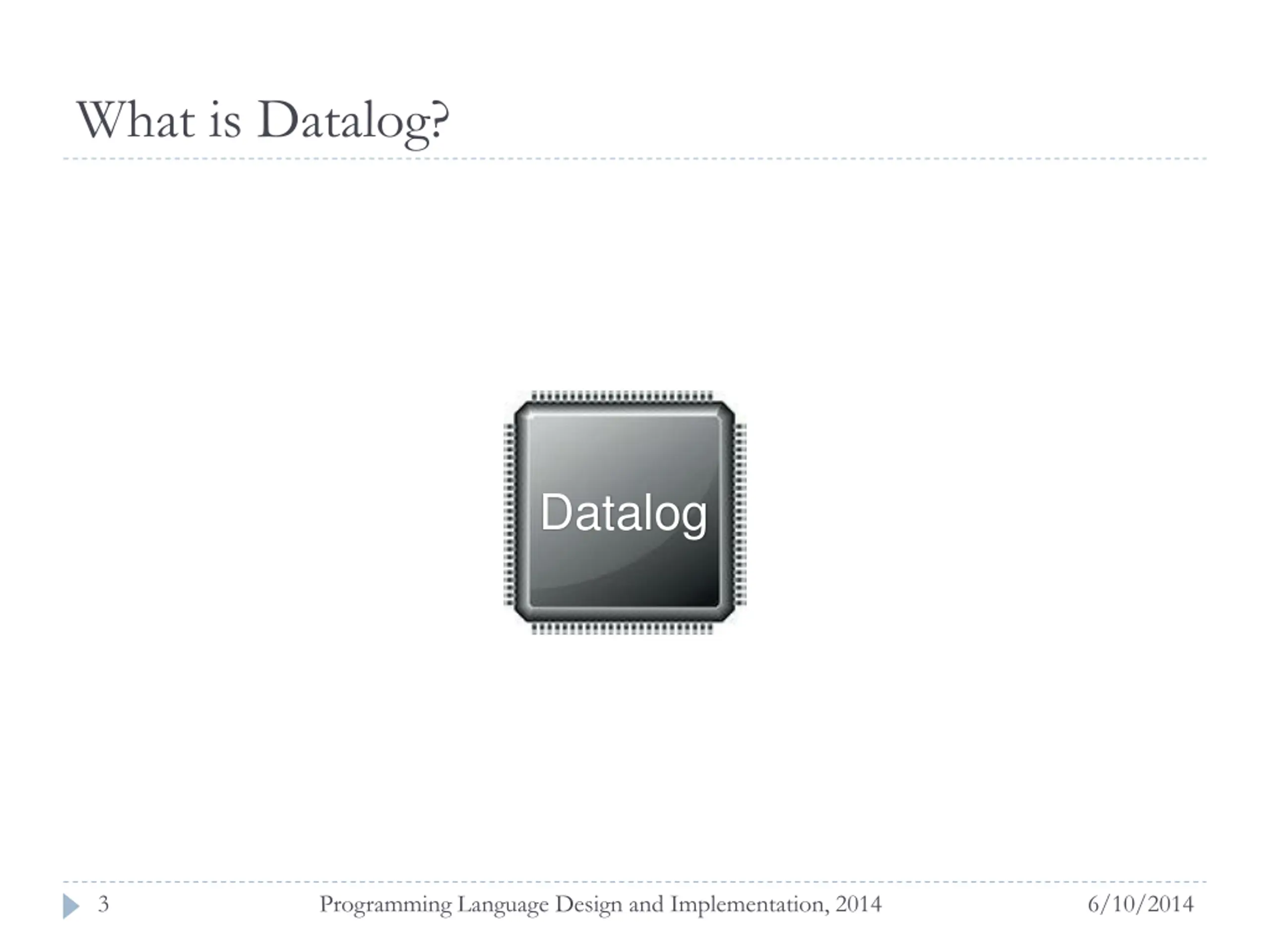 What is Datalog? Datalog 3 Programming Language Design and Implementation, 2014 6/10/2014