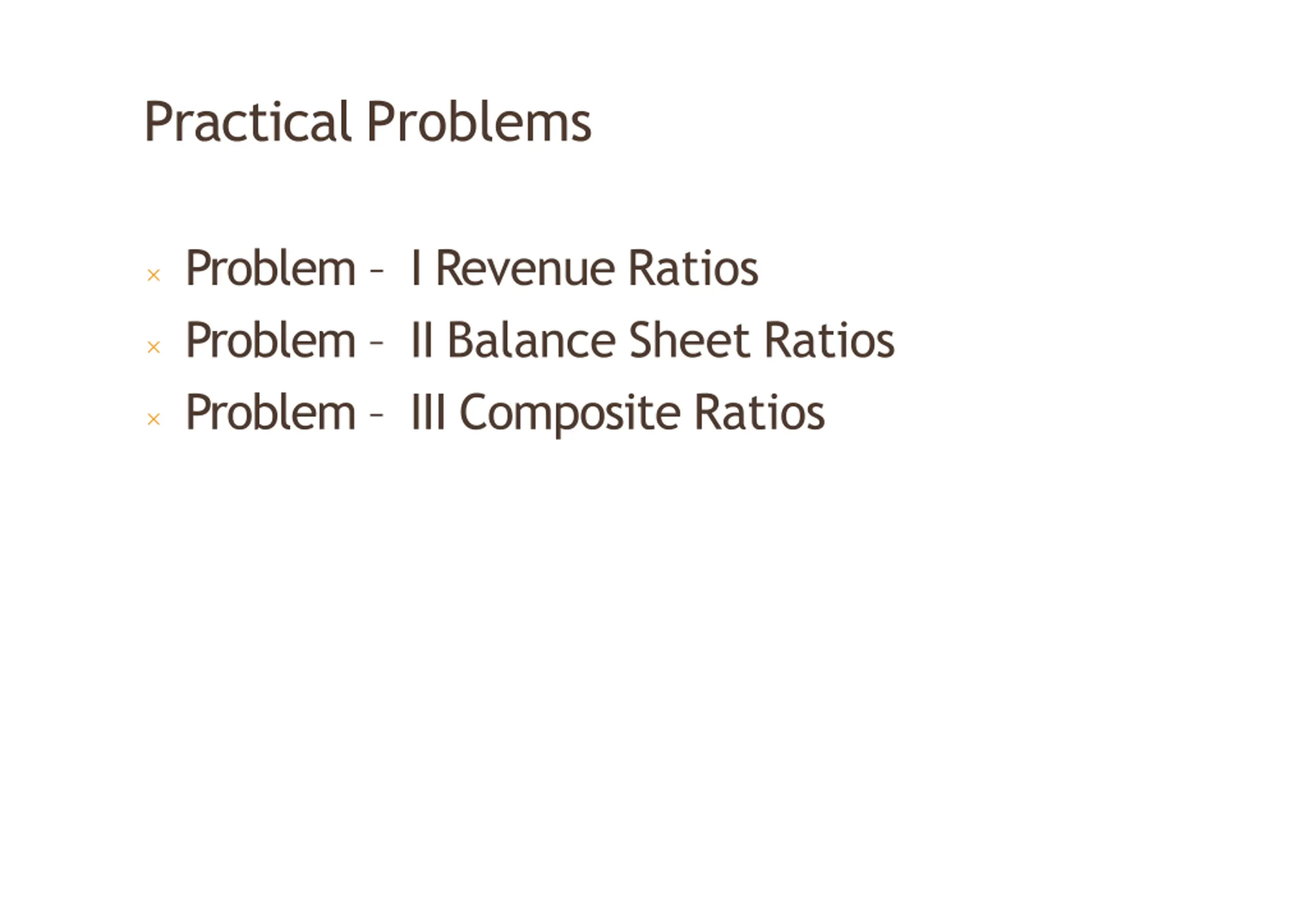 Practical Problems Problem I Revenue Ratios Problem II Balance Sheet Ratios Problem III Composite Ratios