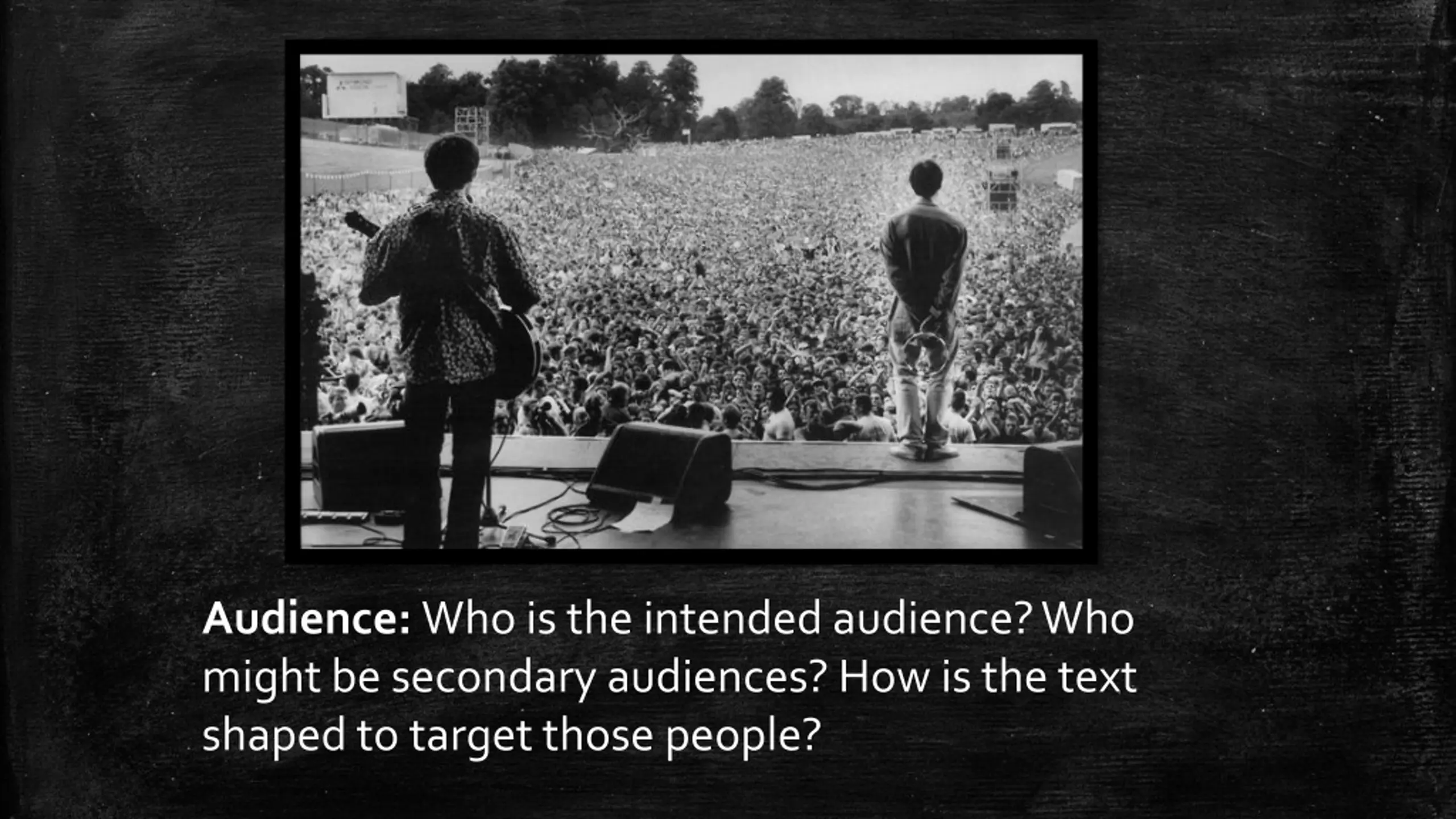 Audience: Who is the intended audience? Who might be secondary audiences? How is the text shaped to target those people?