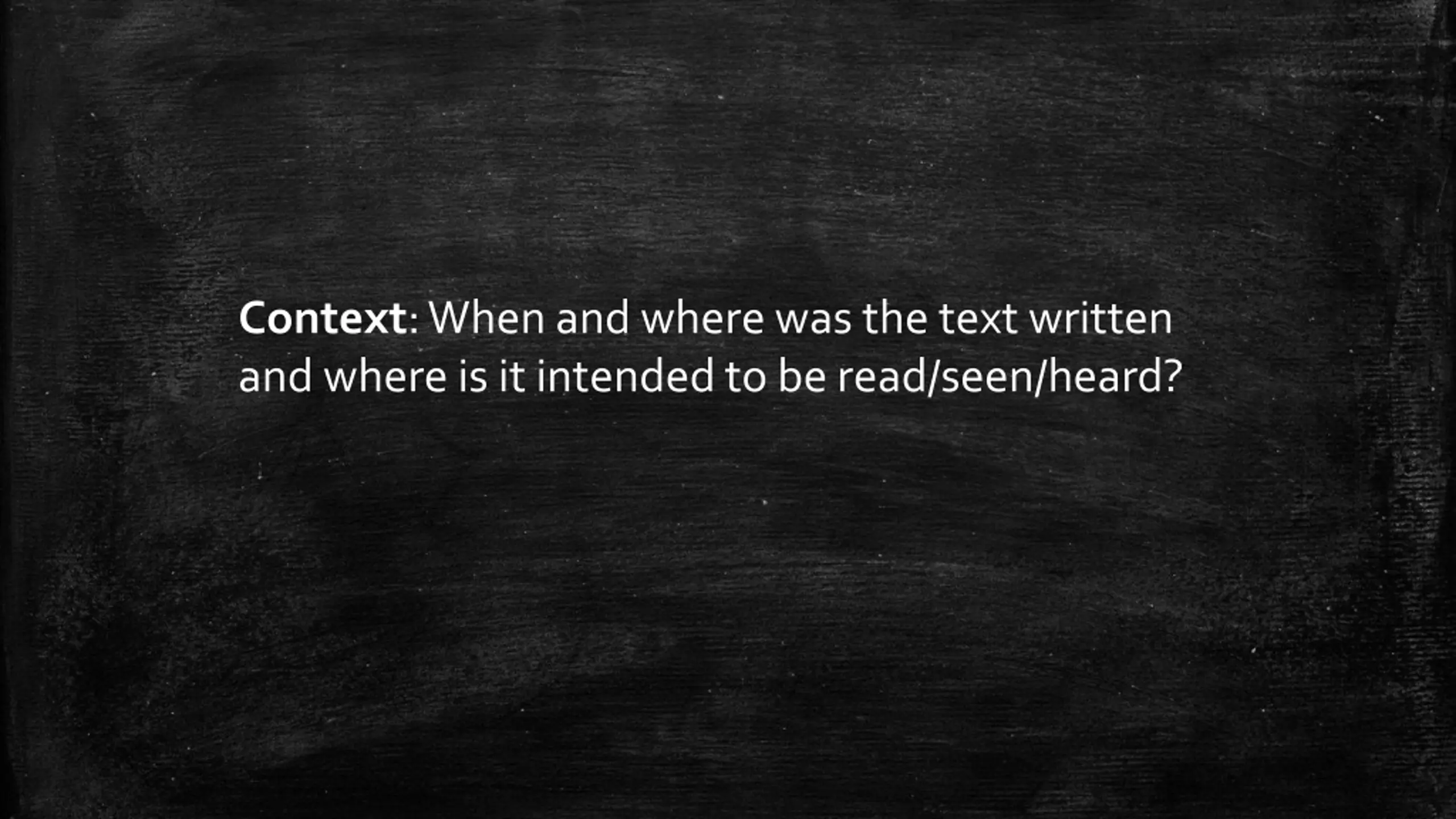 Context: When and where was the text written and where is it intended to be read/seen/heard?