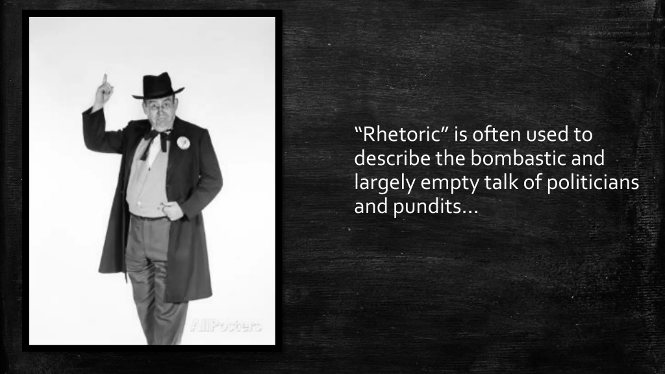 Rhetoric is often used to describe the bombastic and largely empty talk of politicians and pundits