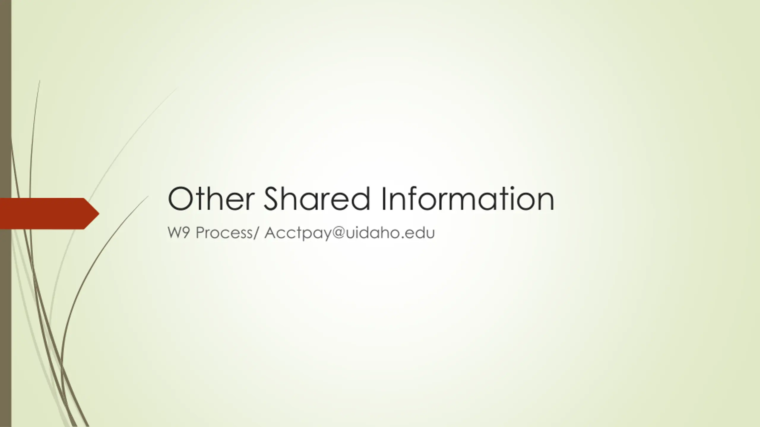 Other Shared Information W9 Process/ Acctpay@uidaho.edu