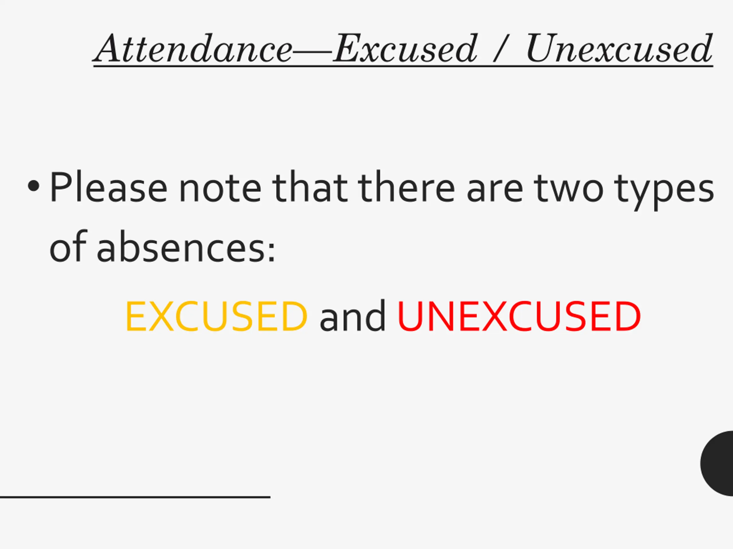 AttendanceExcused / Unexcused Please note that there are two types of absences: EXCUSEDand UNEXCUSED