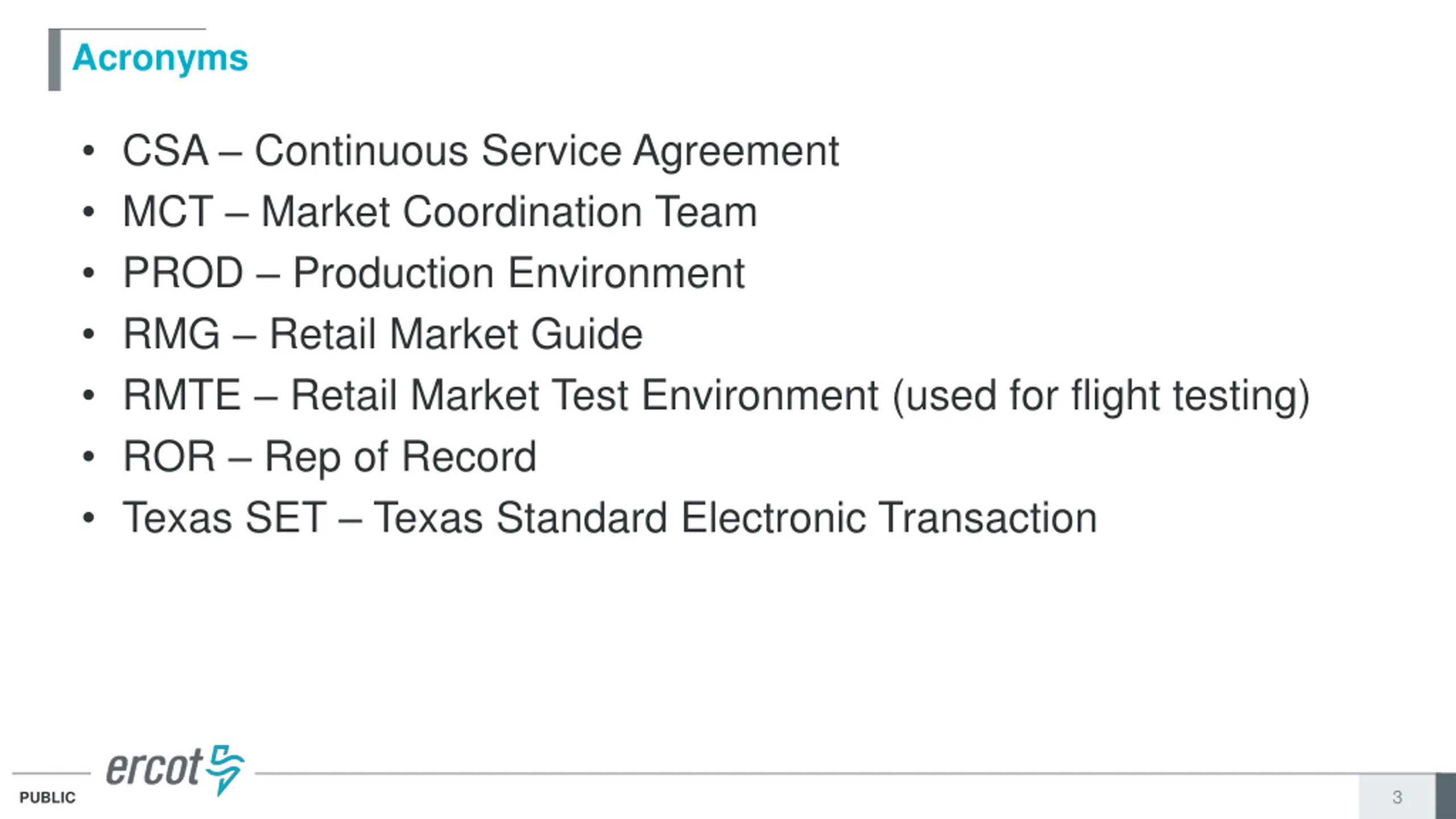 Agenda Acronyms Texas SET V5.0 High Level Changes Flight Test High Level Go Live / Implementation weekend Supporting Documents location 2 PUBLIC