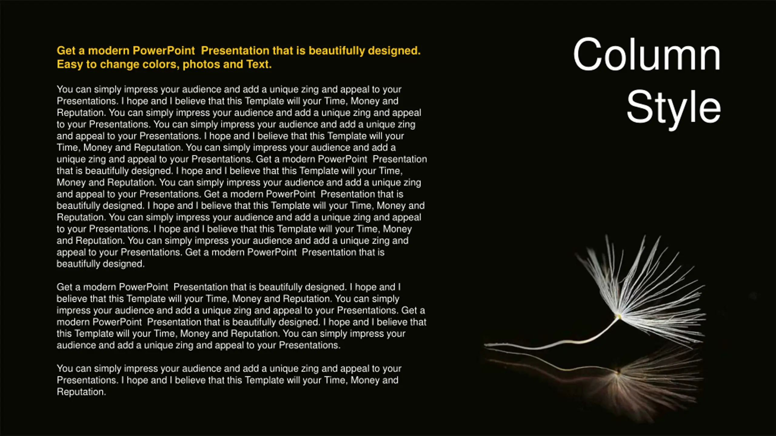 Column Style Get a modern PowerPoint Presentation that is beautifully designed. Easy to change colors, photos and Text. You can simply impress your audience and add a unique zing and appeal to your Presentations. I hope and I believe that this Template will your Time, Money and Reputation. You can simply impress your audience and add a unique zing and appeal to your Presentations. You can simply impress your audience and add a unique zing and appeal to your Presentations. I hope and I believe that this Template will your Time, Money and Reputation. You can simply impress your audience and add a unique zing and appeal to your Presentations. Get a modern PowerPoint Presentation that is beautifully designed. I hope and I believe that this Template will your Time, Money and Reputation. You can simply impress your audience and add a unique zing and appeal to your Presentations. Get a modern PowerPoint Presentation that is beautifully designed. I hope and I believe that this Template will your Time, Money and Reputation. You can simply impress your audience and add a unique zing and appeal to your Presentations. I hope and I believe that this Template will your Time, Money and Reputation. You can simply impress your audience and add a unique zing and appeal to your Presentations. Get a modern PowerPoint Presentation that is beautifully designed. Get a modern PowerPoint Presentation that is beautifully designed. I hope and I believe that this Template will your Time, Money and Reputation. You can simply impress your audience and add a unique zing and appeal to your Presentations. Get a modern PowerPoint Presentation that is beautifully designed. I hope and I believe that this Template will your Time, Money and Reputation. You can simply impress your audience and add a unique zing and appeal to your Presentations. You can simply impress your audience and add a unique zing and appeal to your Presentations. I hope and I believe that this Template will your Time, Money and Reputation.