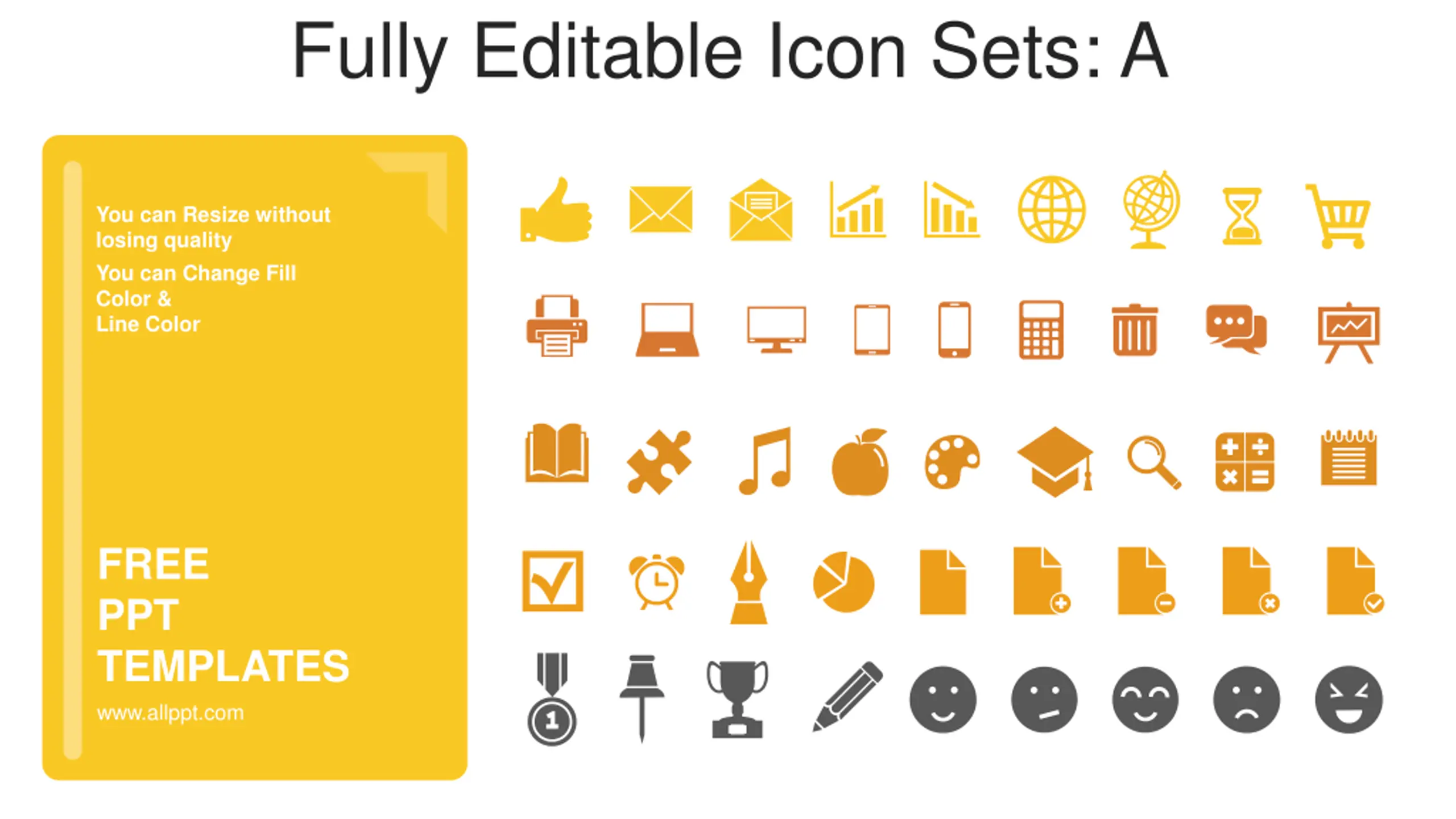 Fully Editable Icon Sets: A You can Resize without losing quality You can Change Fill Color & Line Color FREE PPT TEMPLATES www.allppt.com