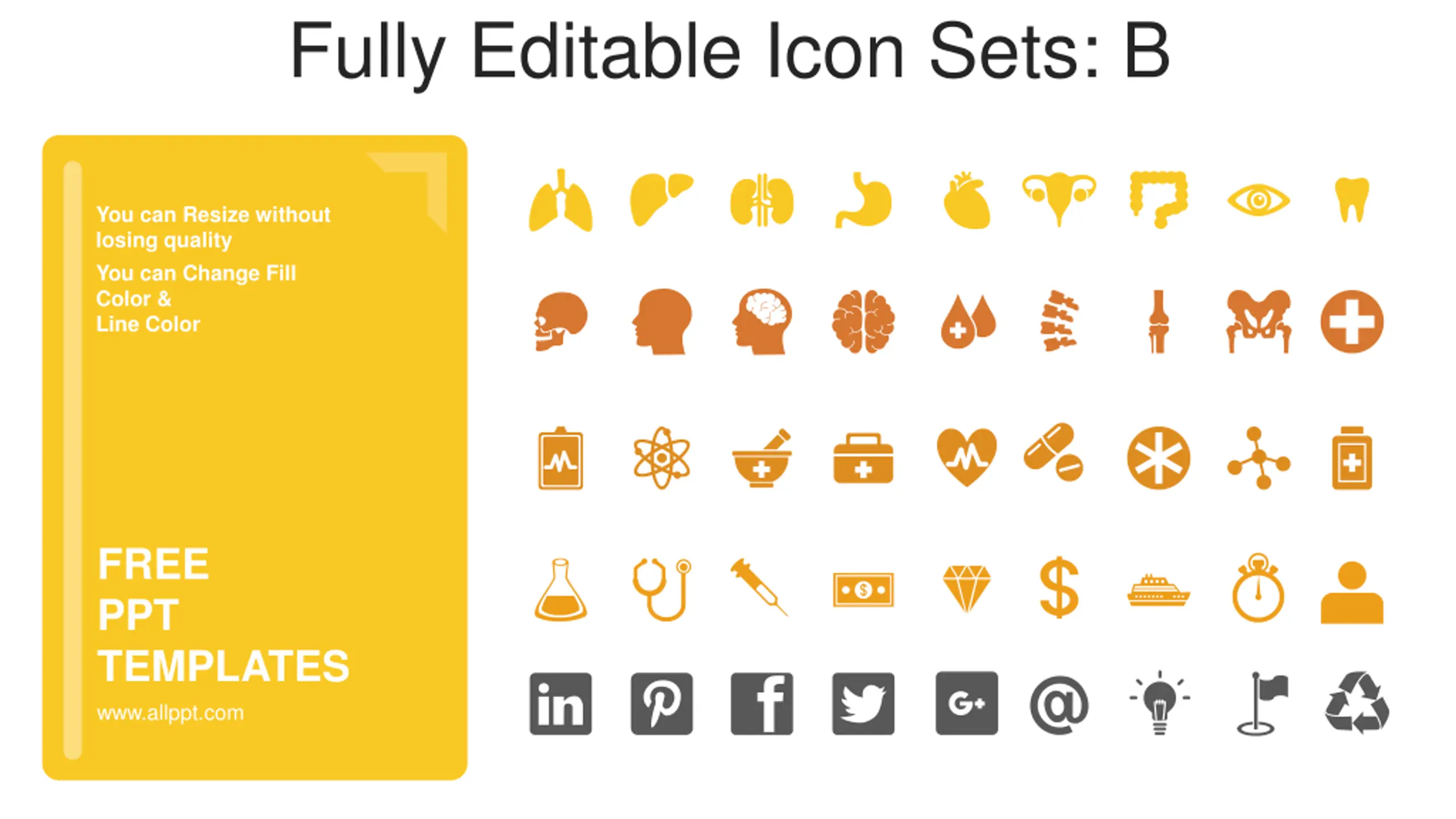 Fully Editable Icon Sets: B You can Resize without losing quality You can Change Fill Color & Line Color FREE PPT TEMPLATES www.allppt.com