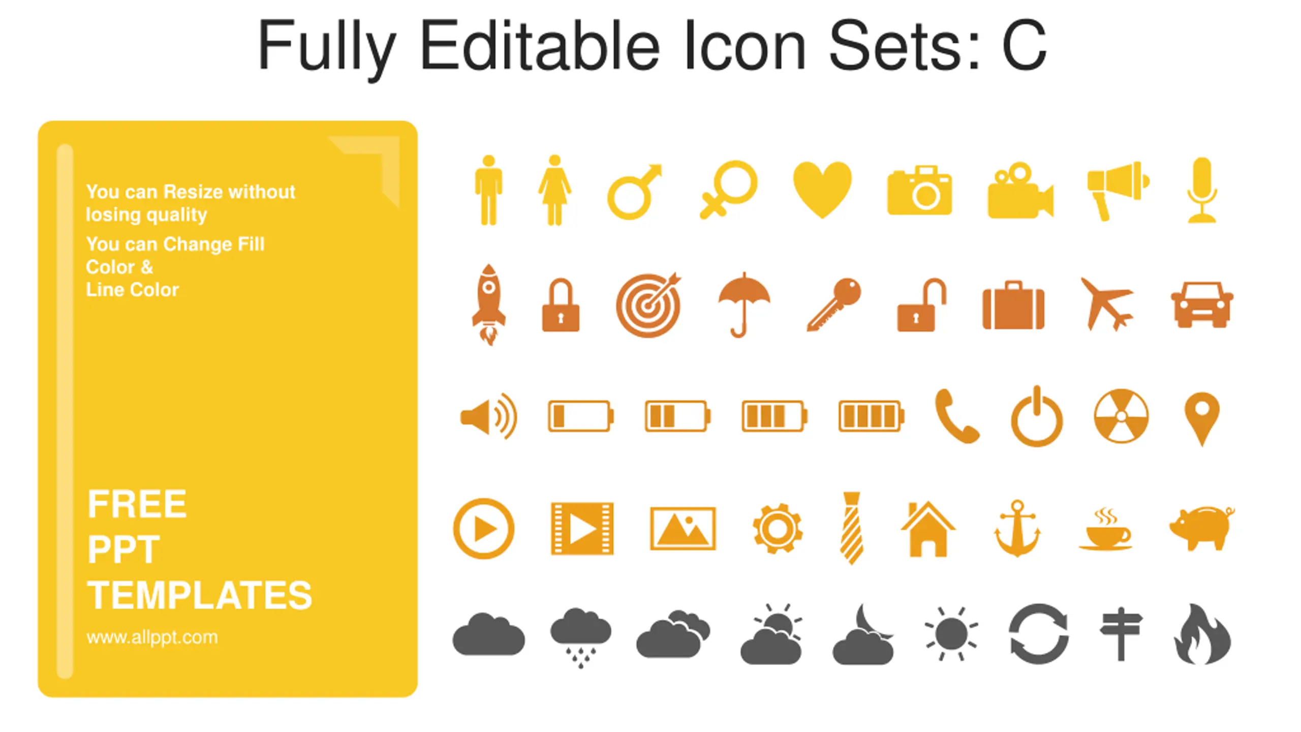 Fully Editable Icon Sets: C You can Resize without losing quality You can Change Fill Color & Line Color FREE PPT TEMPLATES www.allppt.com