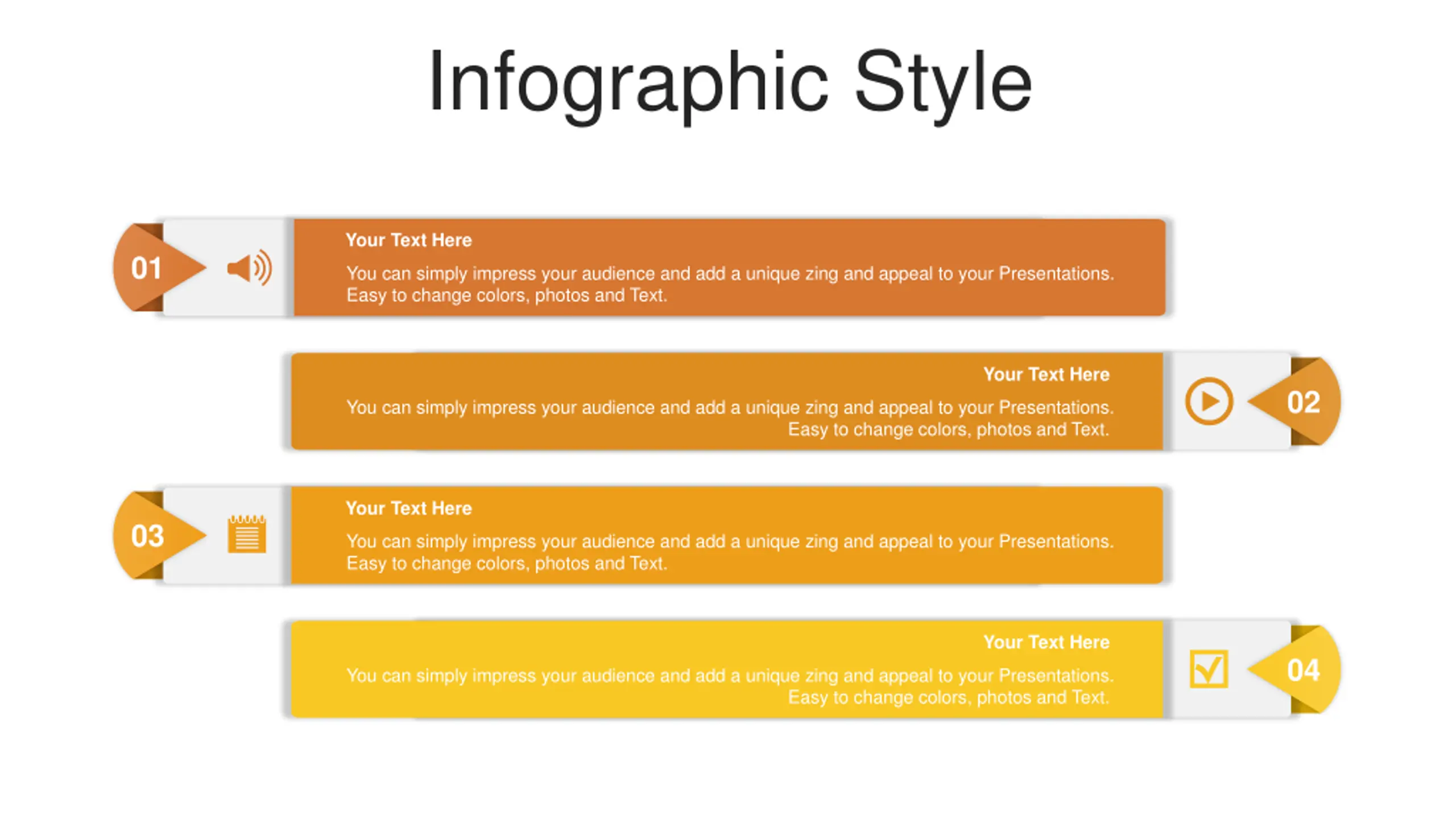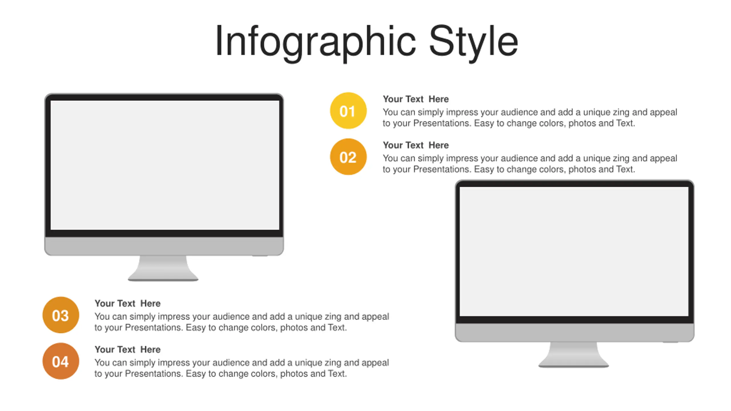 Infographic Style Your Text Here 01 You can simply impress your audience and add a unique zing and appeal to your Presentations. Easy to change colors, photos and Text. Your Text Here 02 You can simply impress your audience and add a unique zing and appeal to your Presentations. Easy to change colors, photos and Text. Your Text Here 03 You can simply impress your audience and add a unique zing and appeal to your Presentations. Easy to change colors, photos and Text. Your Text Here 04 You can simply impress your audience and add a unique zing and appeal to your Presentations. Easy to change colors, photos and Text.
