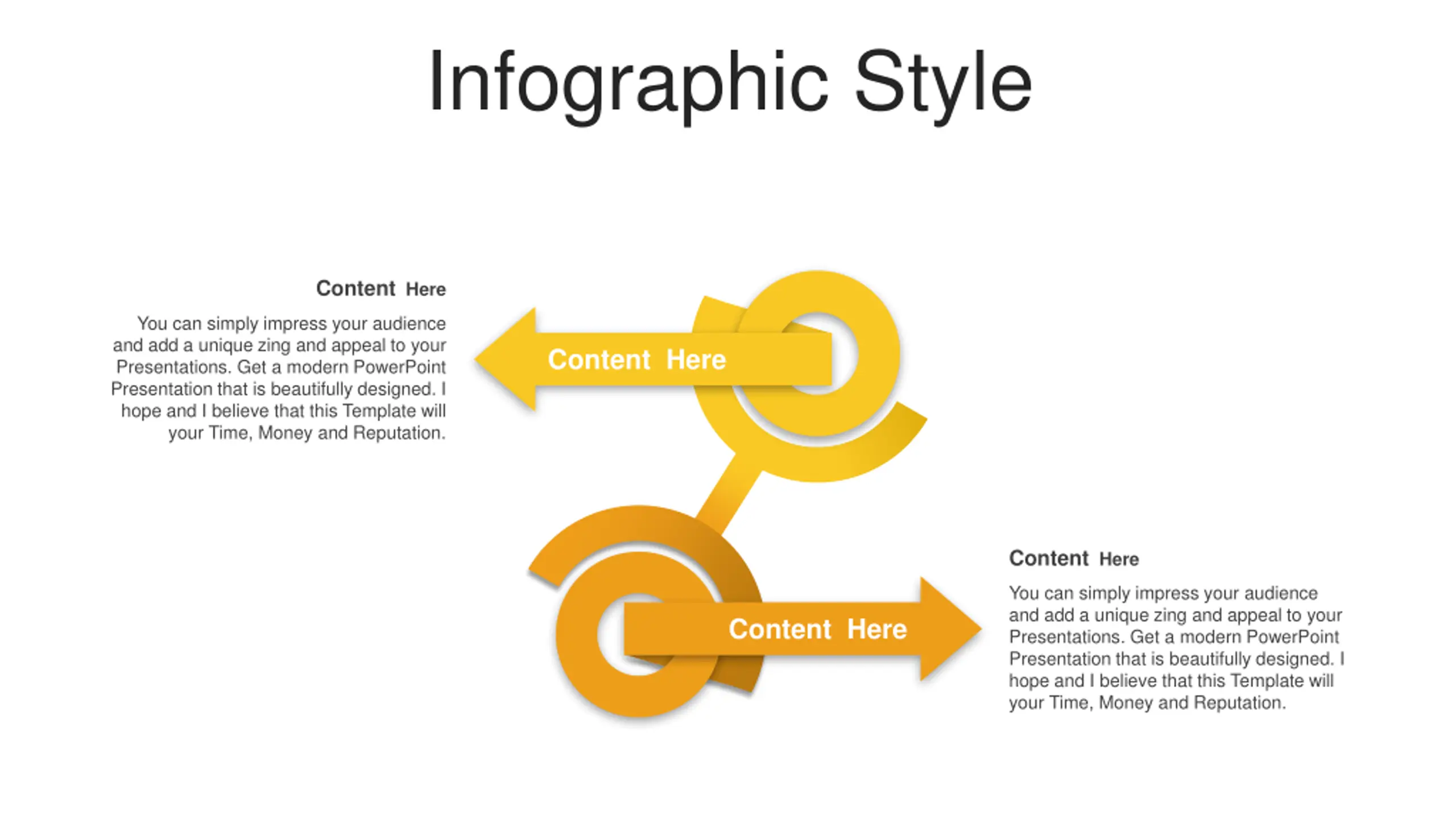 Infographic Style Content Here You can simply impress your audience and add a unique zing and appeal to your Presentations. Get a modern PowerPoint Presentation that is beautifully designed. I hope and I believe that this Template will your Time, Money and Reputation. Content Here Content Here You can simply impress your audience and add a unique zing and appeal to your Presentations. Get a modern PowerPoint Presentation that is beautifully designed. I hope and I believe that this Template will your Time, Money and Reputation. Content Here