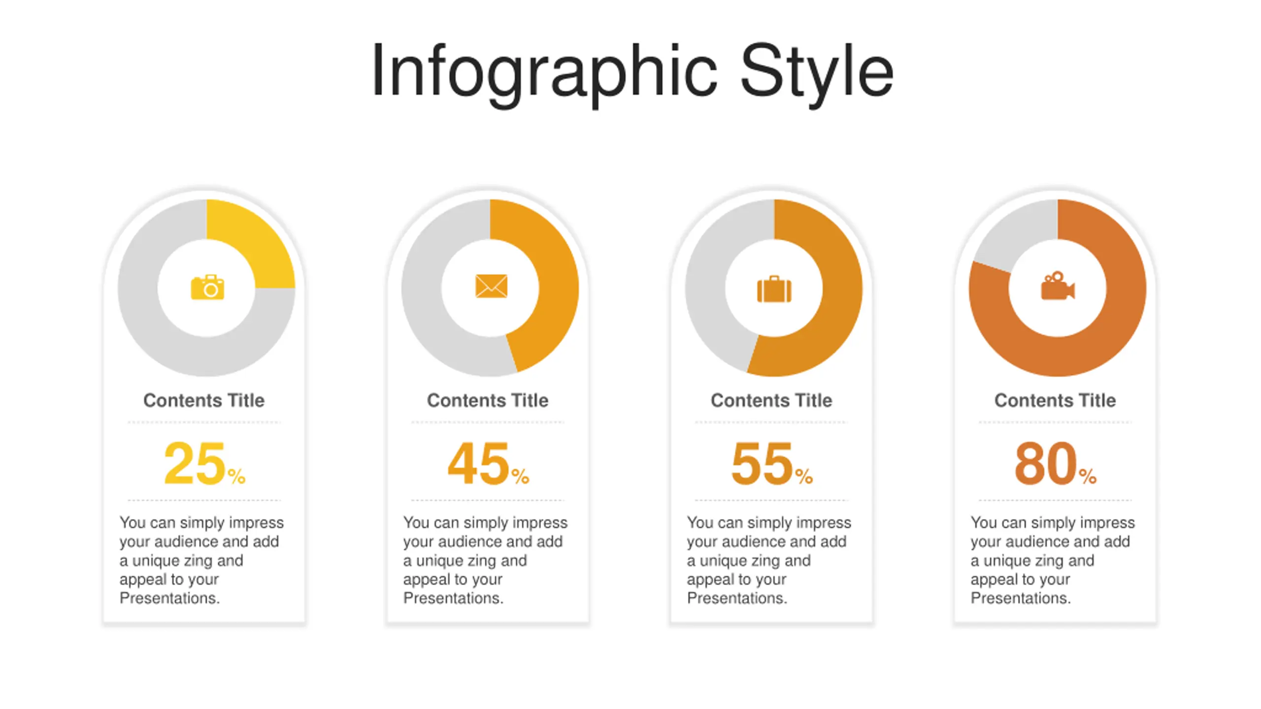 Infographic Style Contents Title 25% Contents Title 45% Contents Title 55% Contents Title 80% You can simply impress your audience and add a unique zing and appeal to your Presentations. You can simply impress your audience and add a unique zing and appeal to your Presentations. You can simply impress your audience and add a unique zing and appeal to your Presentations. You can simply impress your audience and add a unique zing and appeal to your Presentations.