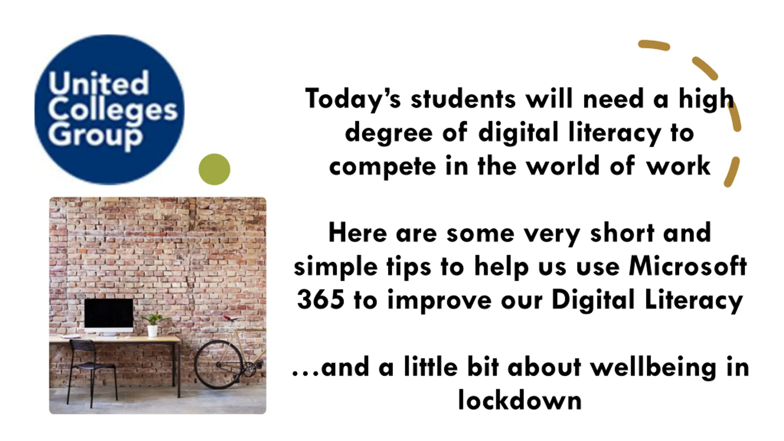 Todays students will need a high degree of digital literacy to compete in the world of work Here are some very short and simple tips to help us use Microsoft 365 to improve our Digital Literacy and a little bit about wellbeing in lockdown