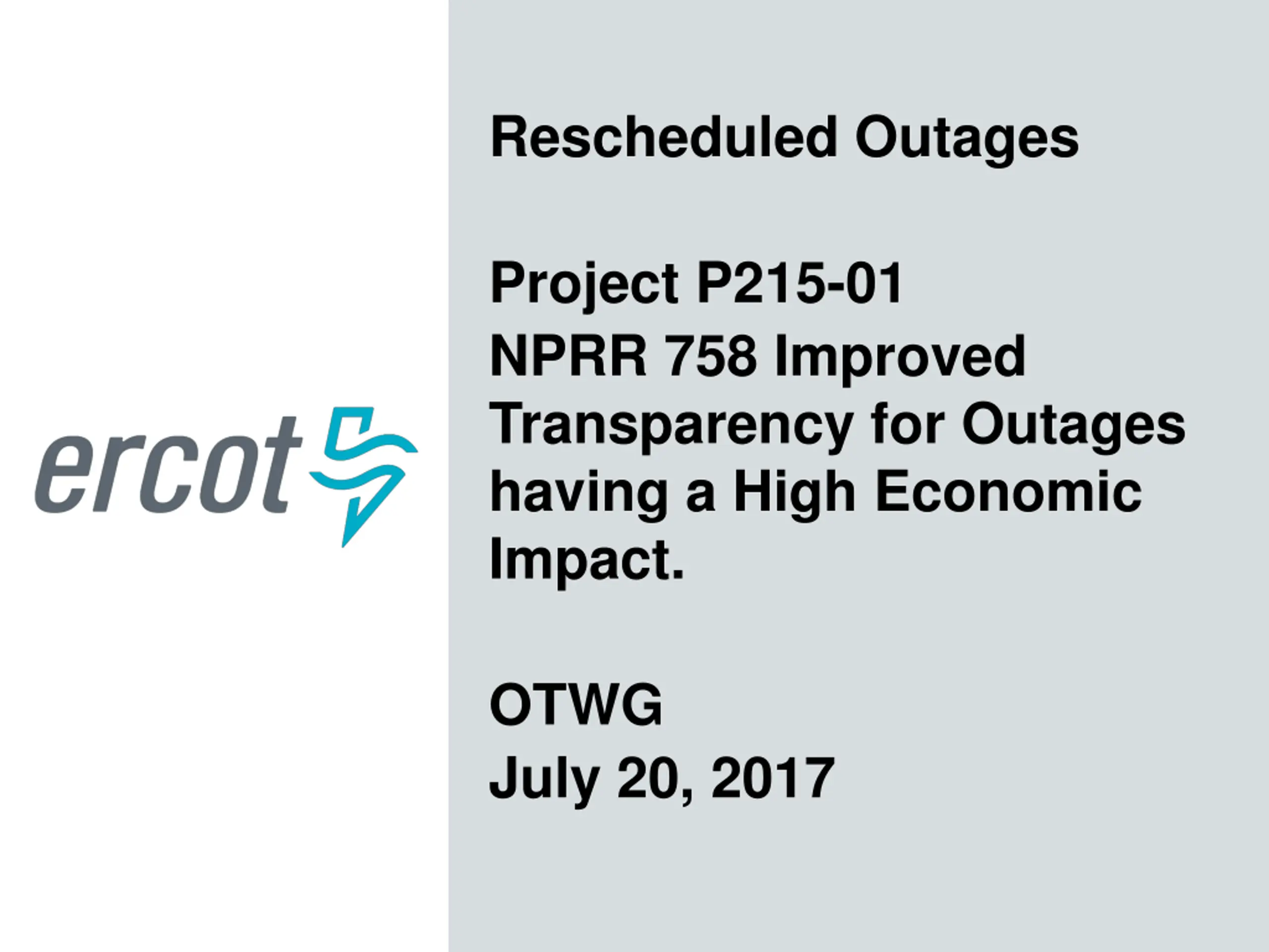 Rescheduled Outages Project P215-01 NPRR 758 Improved Transparency for Outages having a High Economic Impact. OTWG July 20, 2017