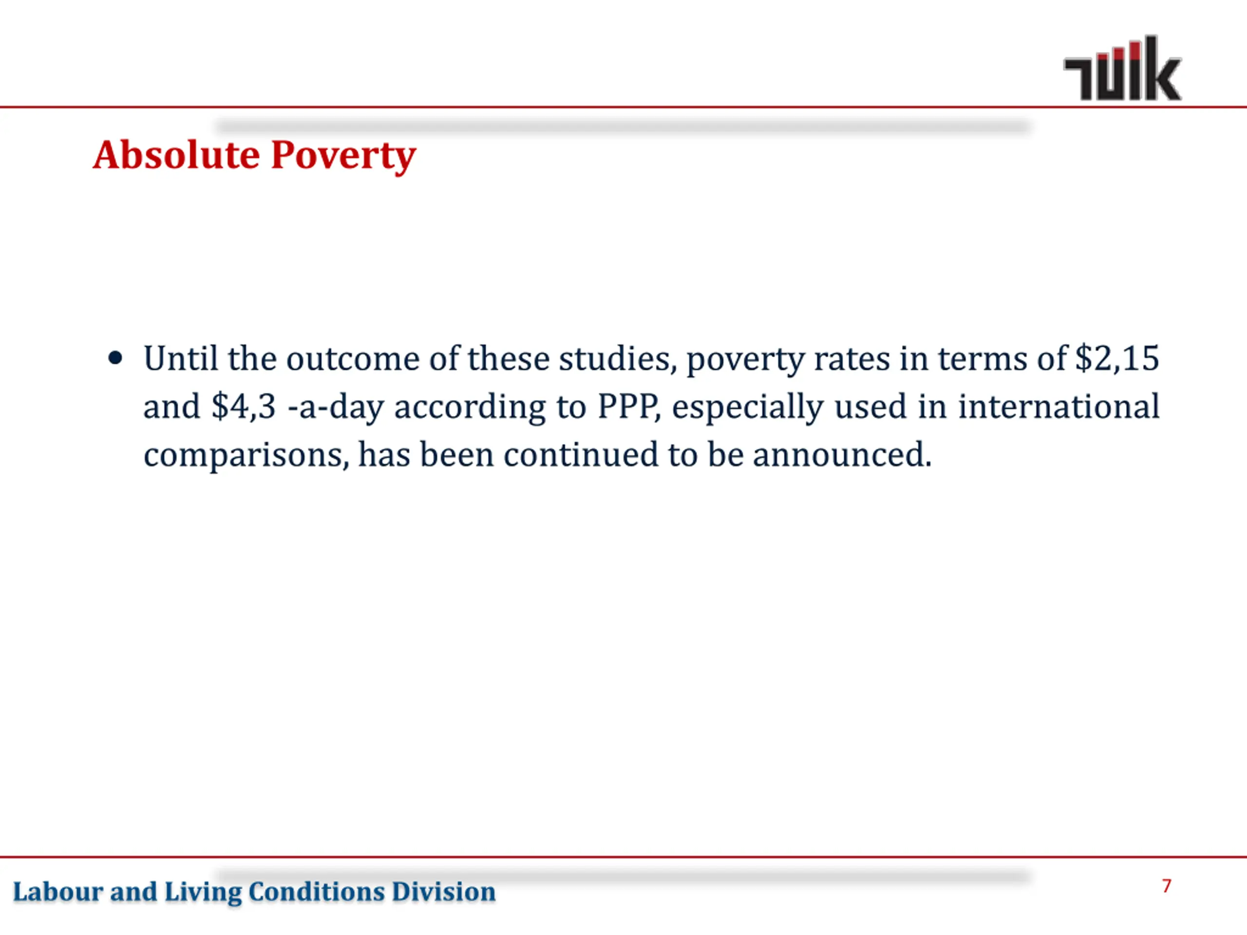 - Absolute Poverty Until the outcome of these studies, poverty rates in terms of $2,15 and $4,3 -a-day according to PPP, especially used in international comparisons, has been continued to be announced. Labour and Living Conditions Division 7