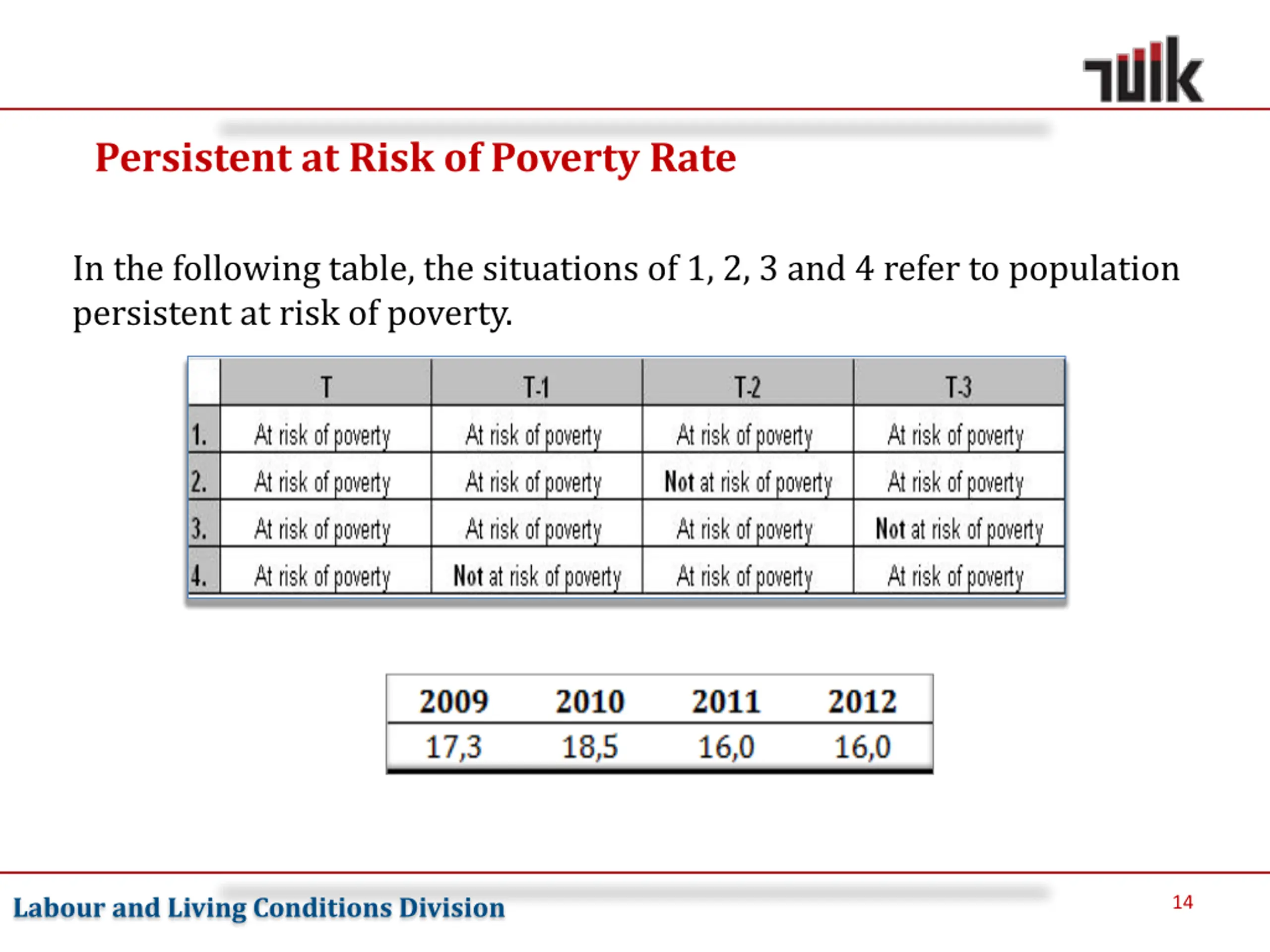 - Persistent at Risk of Poverty Rate In the following table, the situations of 1, 2, 3 and 4 refer to population persistent at risk of poverty. Labour and Living Conditions Division 14