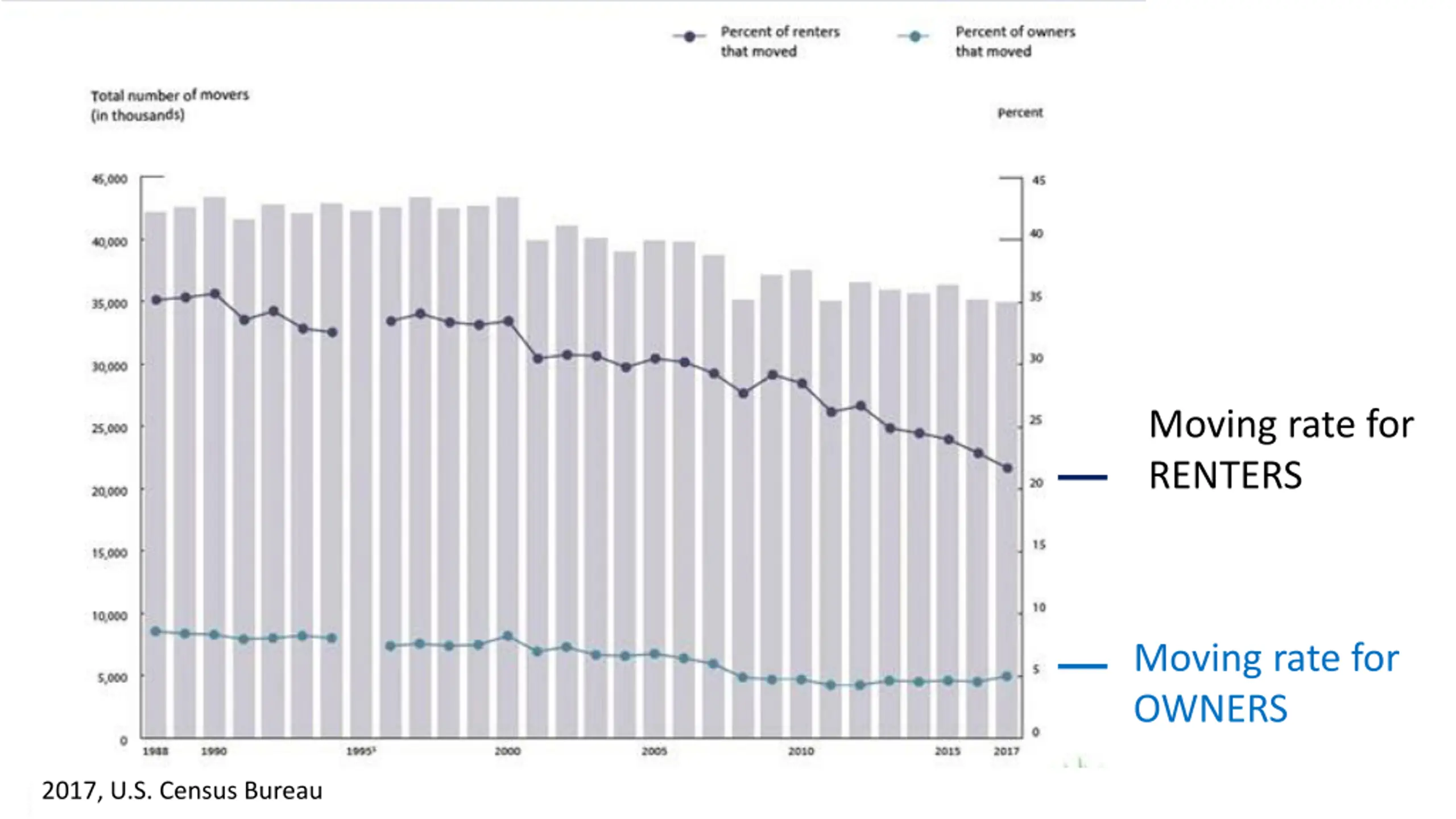 Moving rate for RENTERS Moving rate for OWNERS 2017, U.S. Census Bureau
