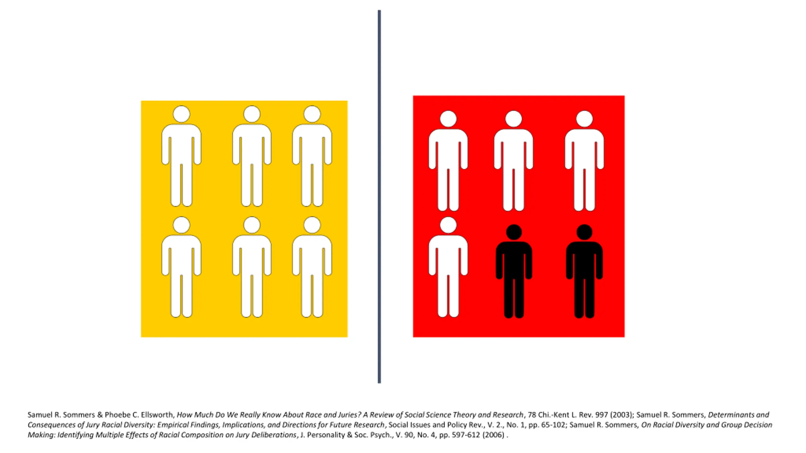 Samuel R. Sommers & Phoebe C. Ellsworth, How Much Do We Really Know About Race and Juries? A Review of Social Science Theory and Research, 78 Chi.-Kent L. Rev. 997 (2003); Samuel R. Sommers, Determinants and Consequences of Jury Racial Diversity: Empirical Findings, Implications, and Directions for Future Research, Social Issues and Policy Rev., V. 2., No. 1, pp. 65-102; Samuel R. Sommers, On Racial Diversity and Group Decision Making: Identifying Multiple Effects of Racial Composition on Jury Deliberations, J. Personality & Soc. Psych., V. 90, No. 4, pp. 597-612 (2006) .