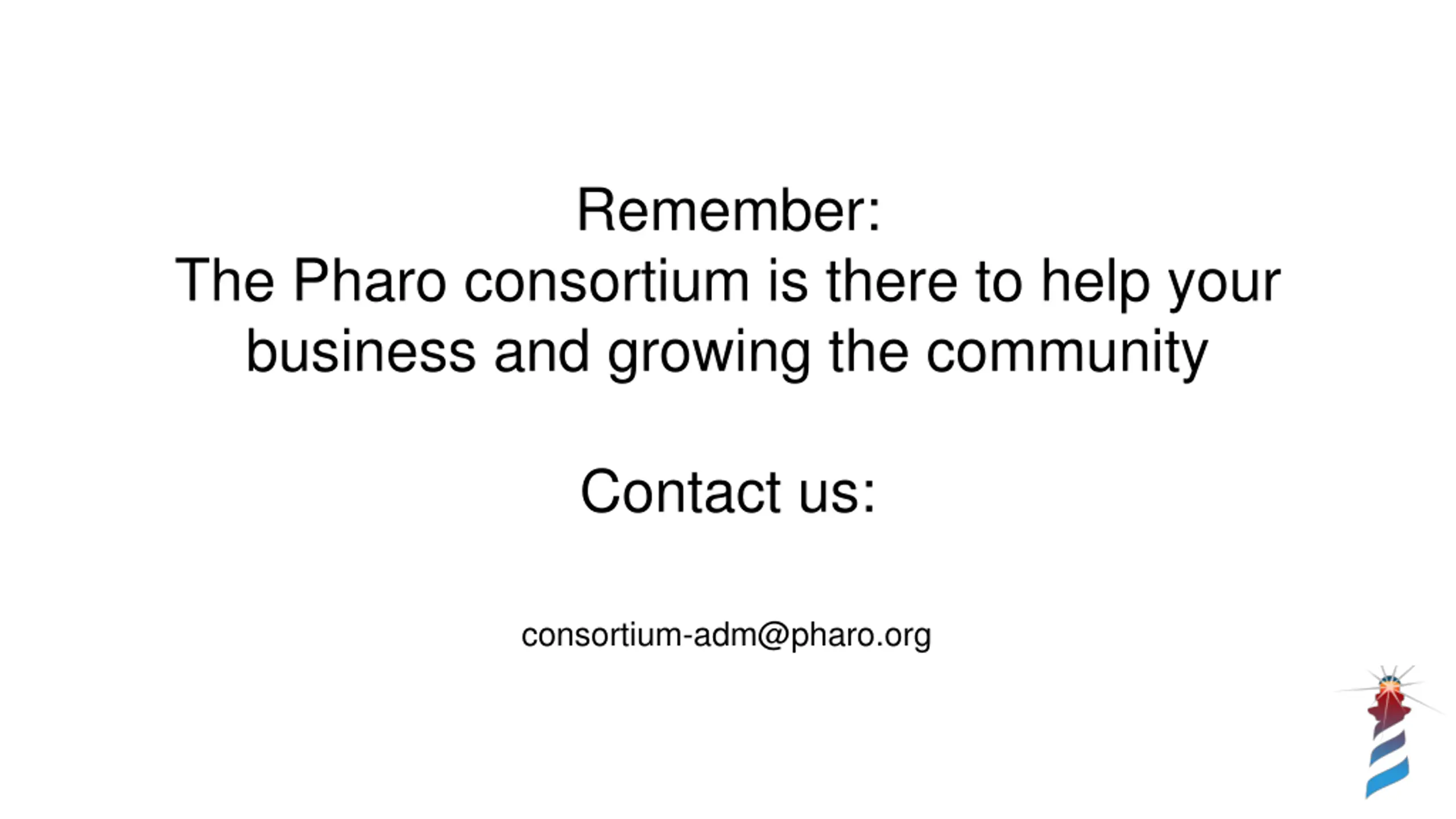 Remember: The Pharo consortium is there to help your business and growing the community Contact us: consortium-adm@pharo.org