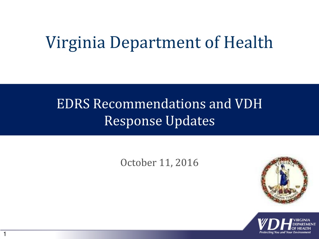 Virginia Department of Health EDRS Recommendations and VDH Response Updates October 11, 2016 1