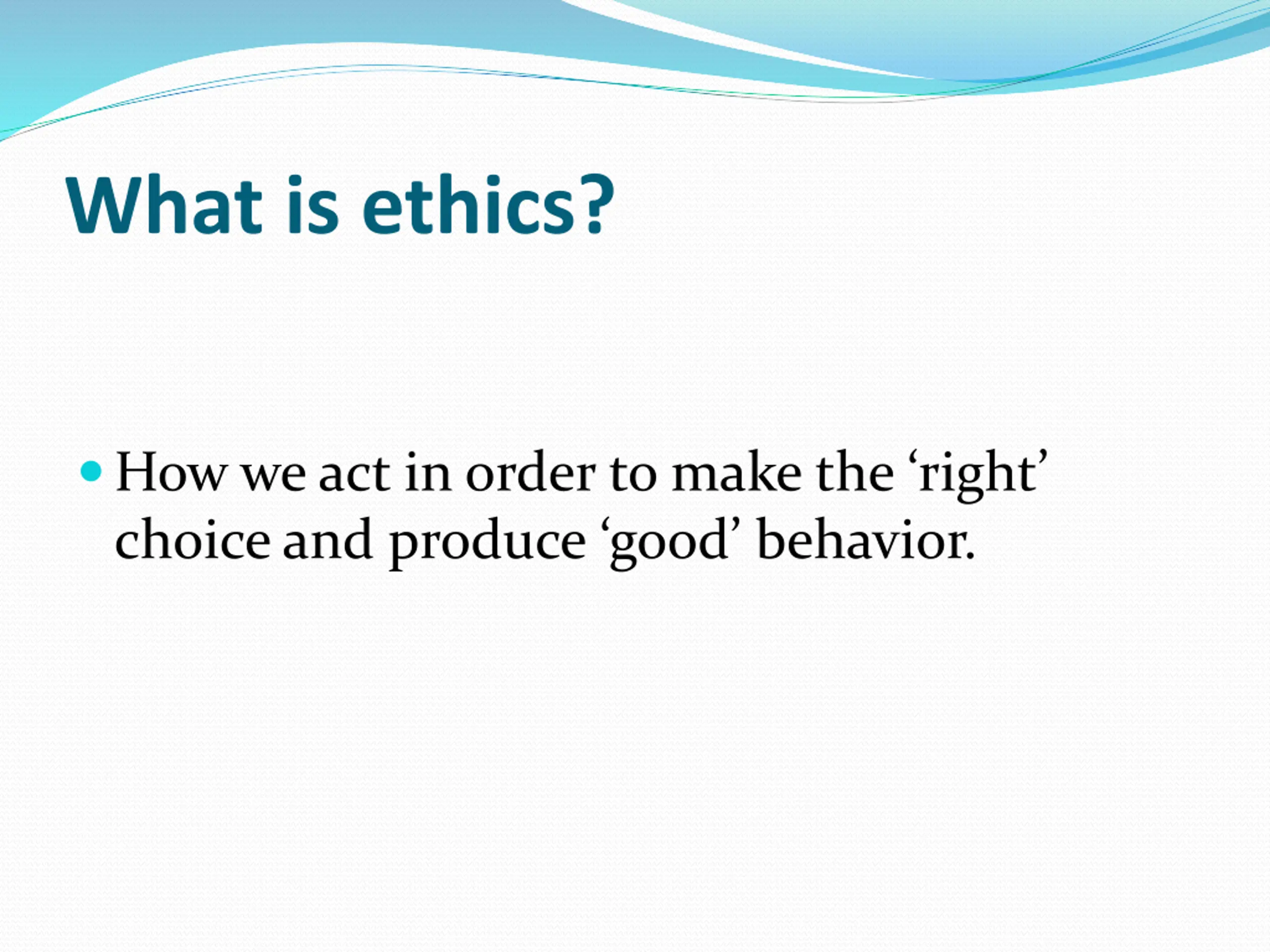 What is ethics? How we act in order to make the right choice and produce good behavior.