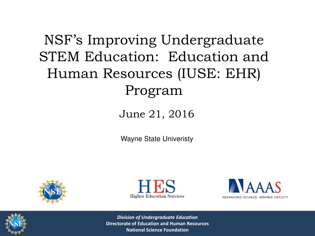 NSFs Improving Undergraduate STEM Education: Education and Human Resources (IUSE: EHR) Program June 21, 2016 Wayne State Univeristy Division of Undergraduate Education Directorate of Education and Human Resources National Science Foundation