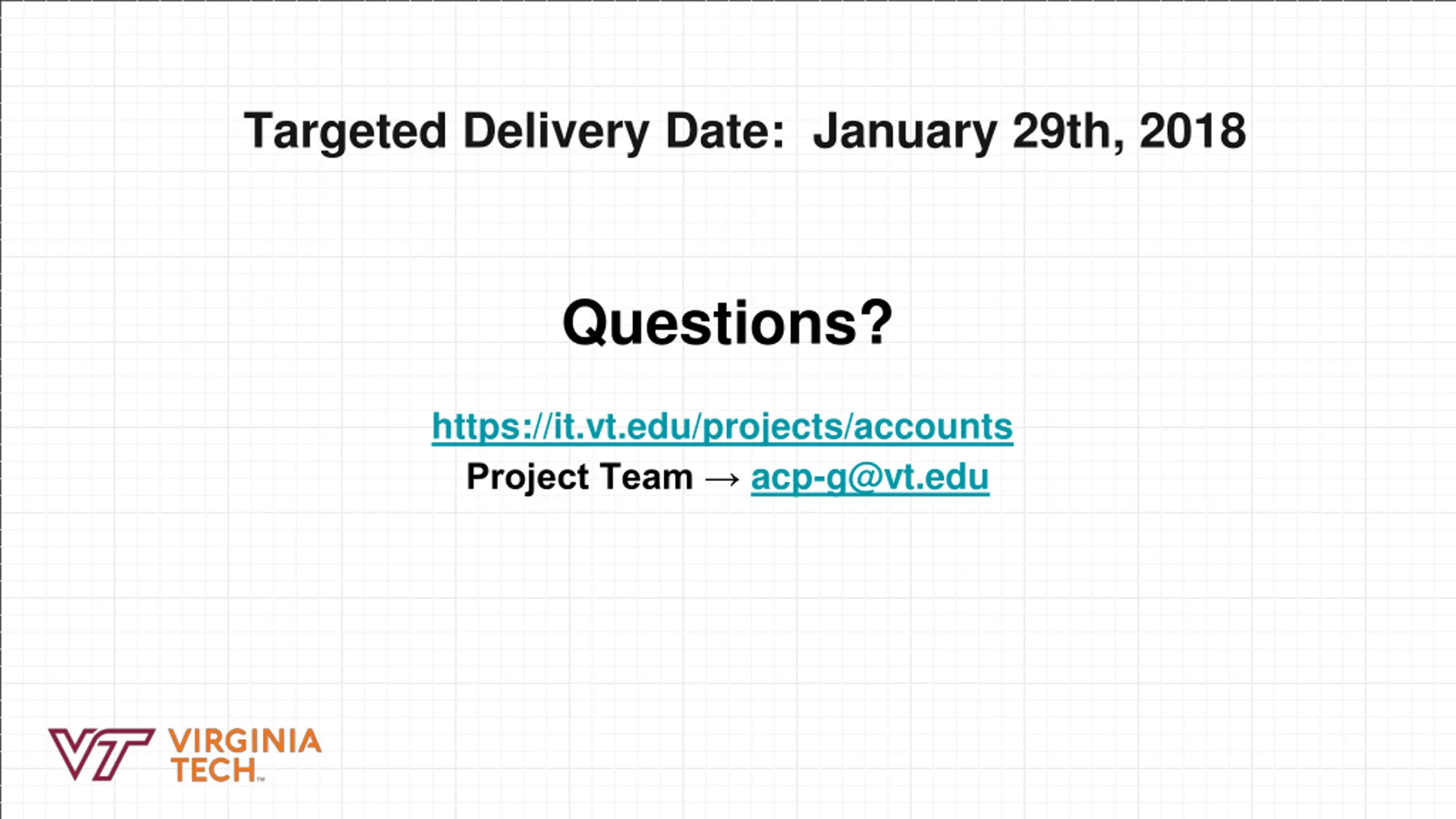 Targeted Delivery Date: January 29th, 2018 Questions? https://it.vt.edu/projects/accounts Project Team acp-g@vt.edu