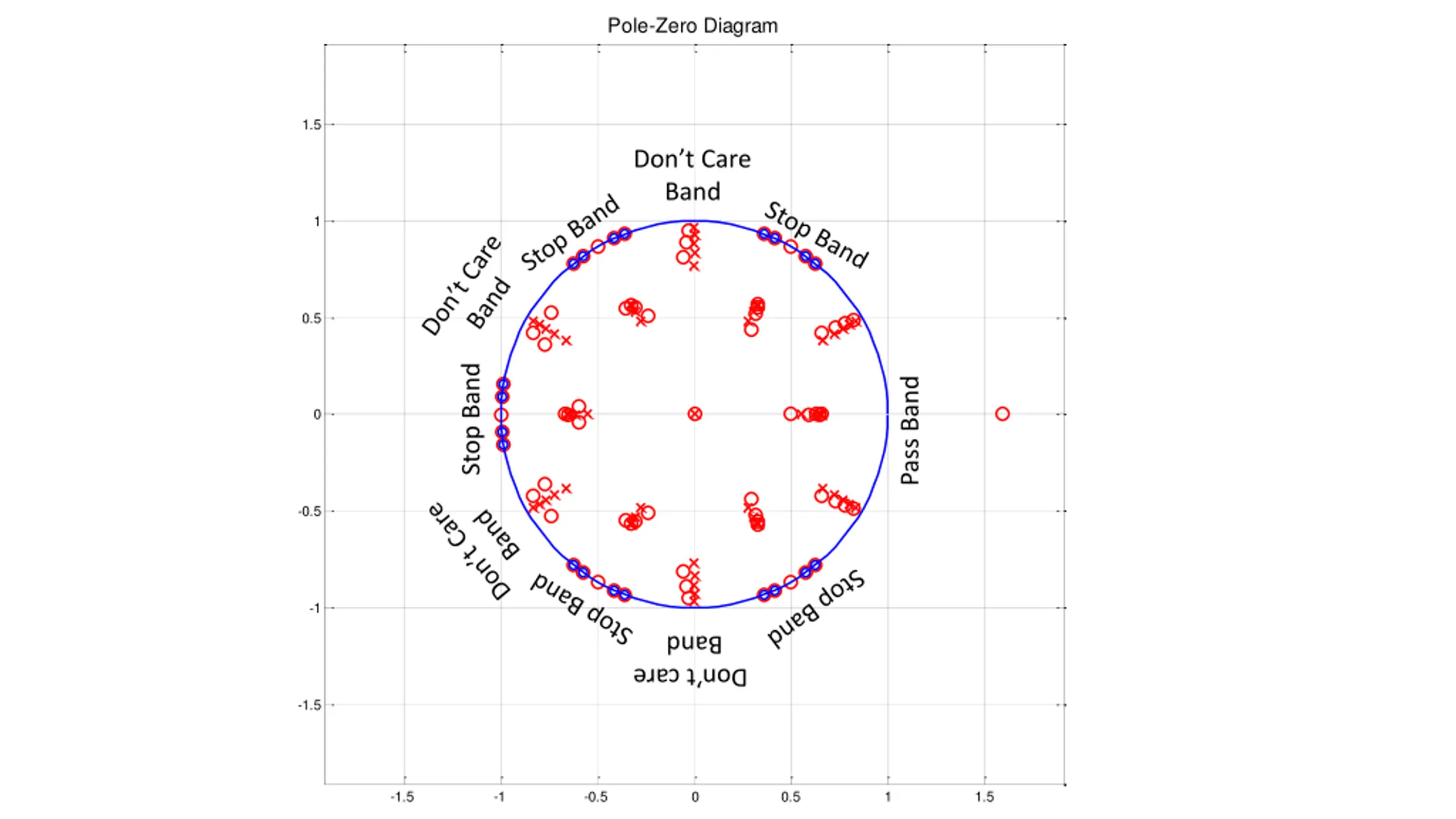 Pole-Zero Diagram 1.5 Don t Care Band 1 0.5 Stop Band Pass Band 0 -0.5 -1 Band Don t care -1.5 -1.5 -1 -0.5 0 0.5 1 1.5