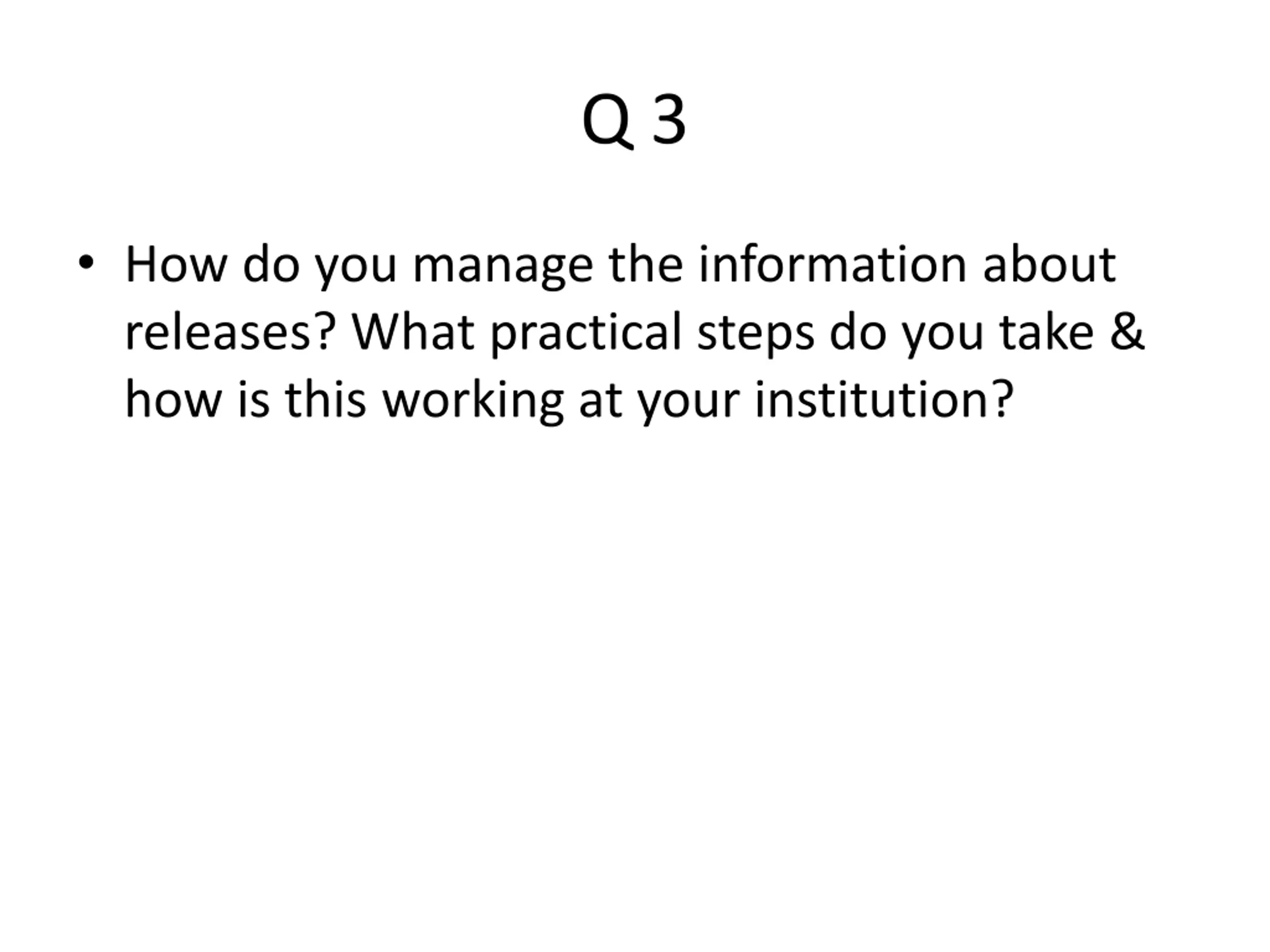 Q 3 How do you manage the information about releases? What practical steps do you take & how is this working at your institution?
