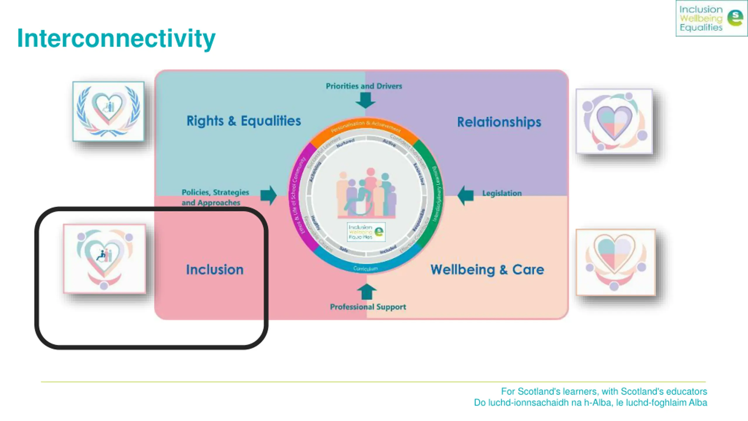 Inclusion Wellbeing & Equalities Professional Learning Framework The Inclusive Scottish Context An Introduction Informed level @ESInclusionTeam For Scotland's learners, with Scotland's educators Do luchd-ionnsachaidh na h-Alba, le luchd-foghlaim Alba For Scotland's learners, with Scotland's educators Do luchd-ionnsachaidh na h-Alba, le luchd-foghlaim Alba