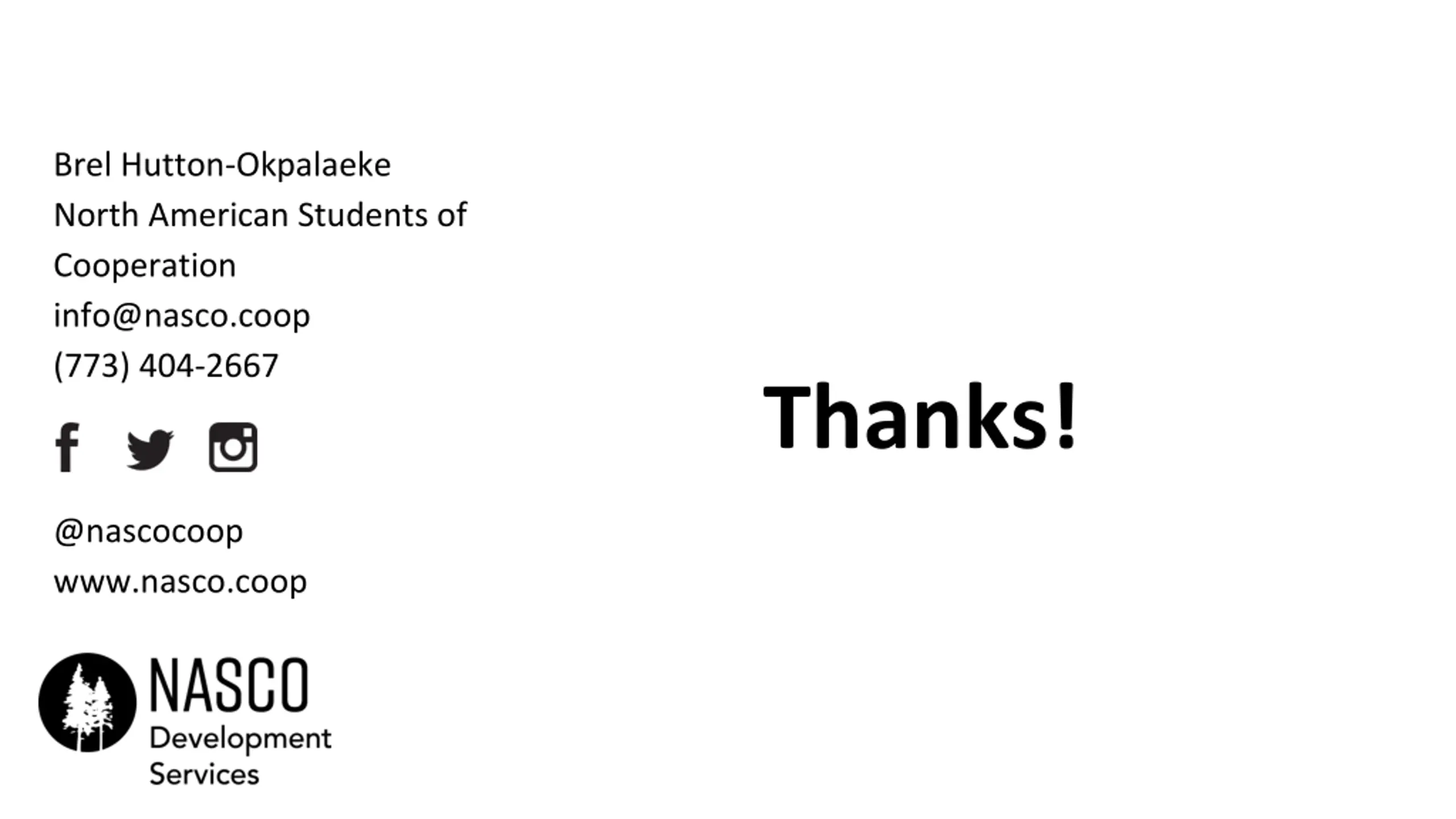 Brel Hutton-Okpalaeke North American Students of Cooperation info@nasco.coop (773) 404-2667 Thanks! @nascocoop www.nasco.coop